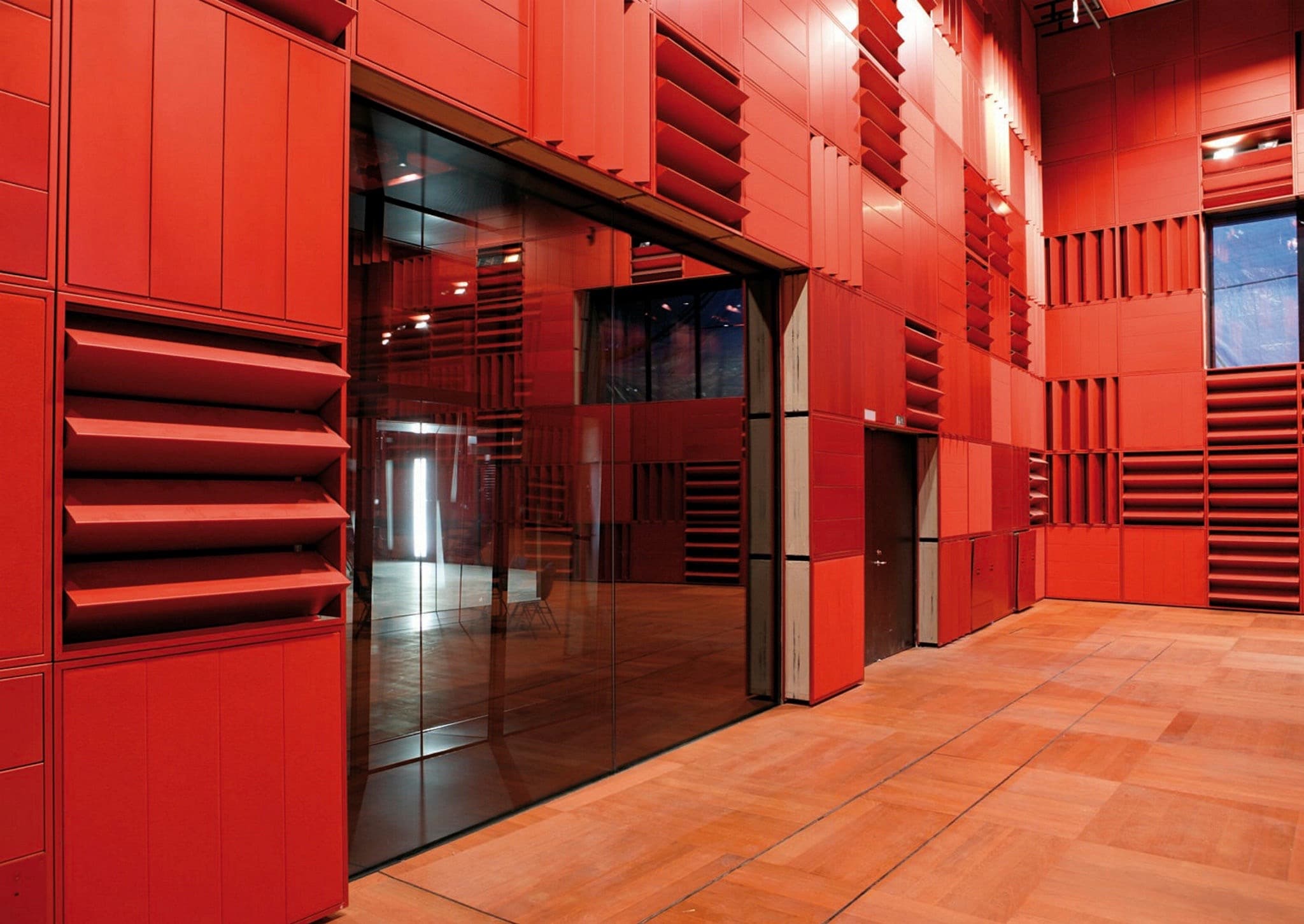 Det dybrøde studie 4 er især tiltænkt korsang og kammermusik. Akustikken justeres her af trekantede vægpaneler beklædt med filt, der kan drejes for at opnå den ønskede effekt. Scenen bygges op af podier, hvilket gør salen meget fleksibel.