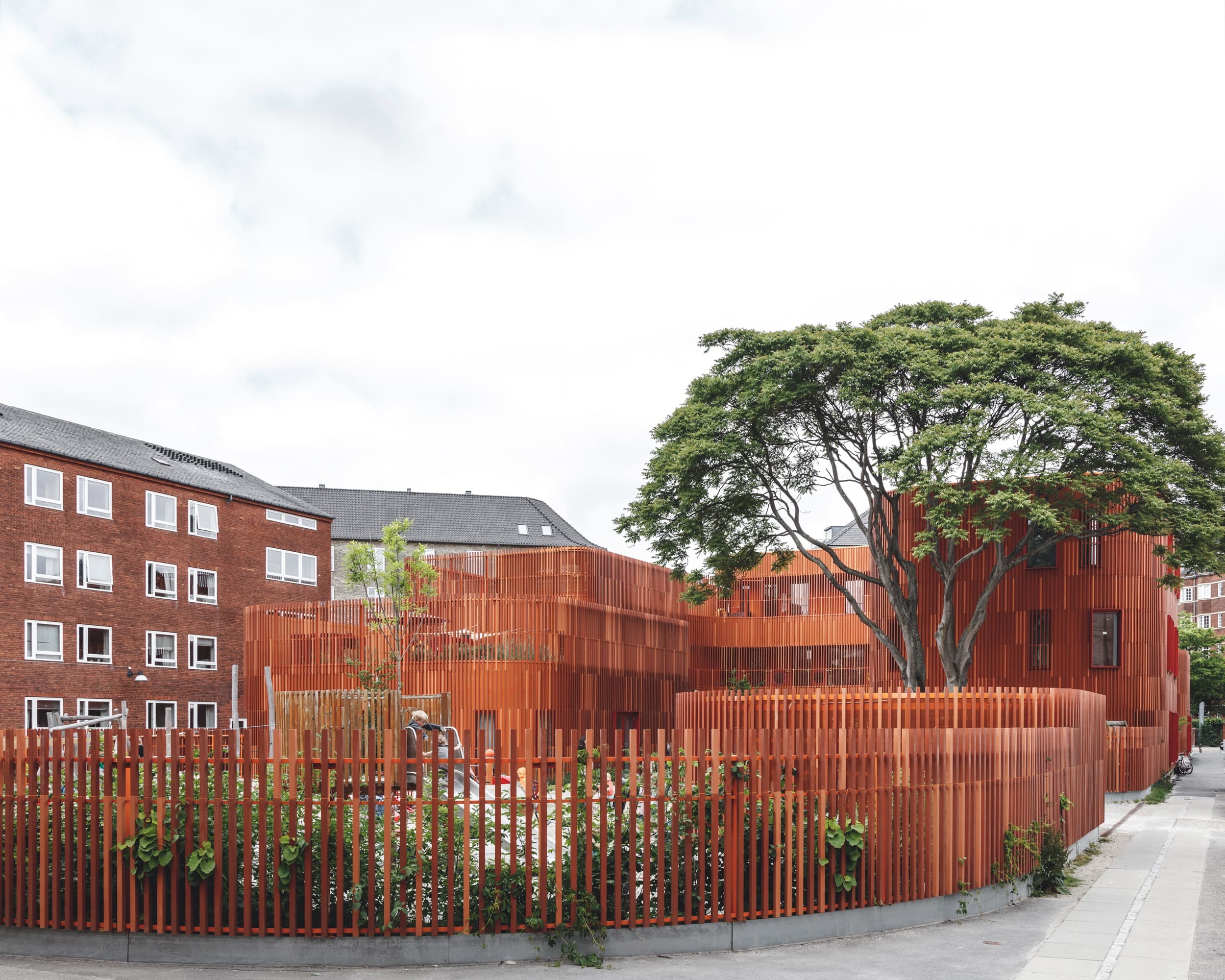 Den orangerøde membran, der er brugt til stålskelettet, mimer de historiske murstensbyggerier i nærheden. De huser seniorer og plejehjem, og forener dermed generationer på forskellige måder. Internt fremmer stedet kreativitet og læring gennem effektive arealer og lyse rum, der giver mulighed for enhver form for leg og samvær.