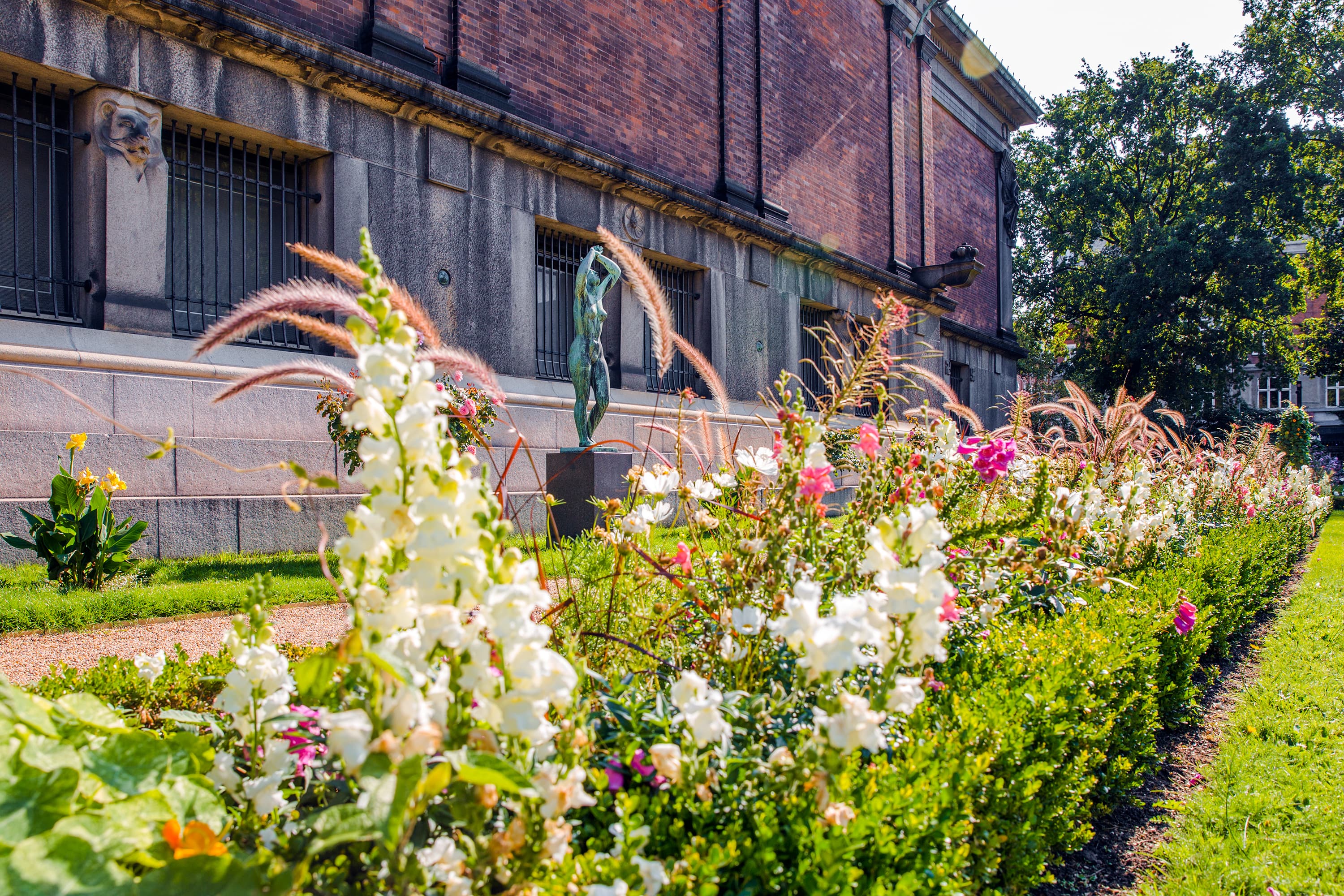 På bygningens bagside, ligger Glyptotekshaven, hvor du blandt andet kan besøge skulpturen Grubleren og sætte dig på en bænk og nyde den velfriserede have. Har du billet til museet, kan du også besøge tagterrassen. Her er der udsigt til københavner-klassikere som Tivoli og Politigården – men også til moderne byggeri i form af Børnebyen ved Glyptoteket.