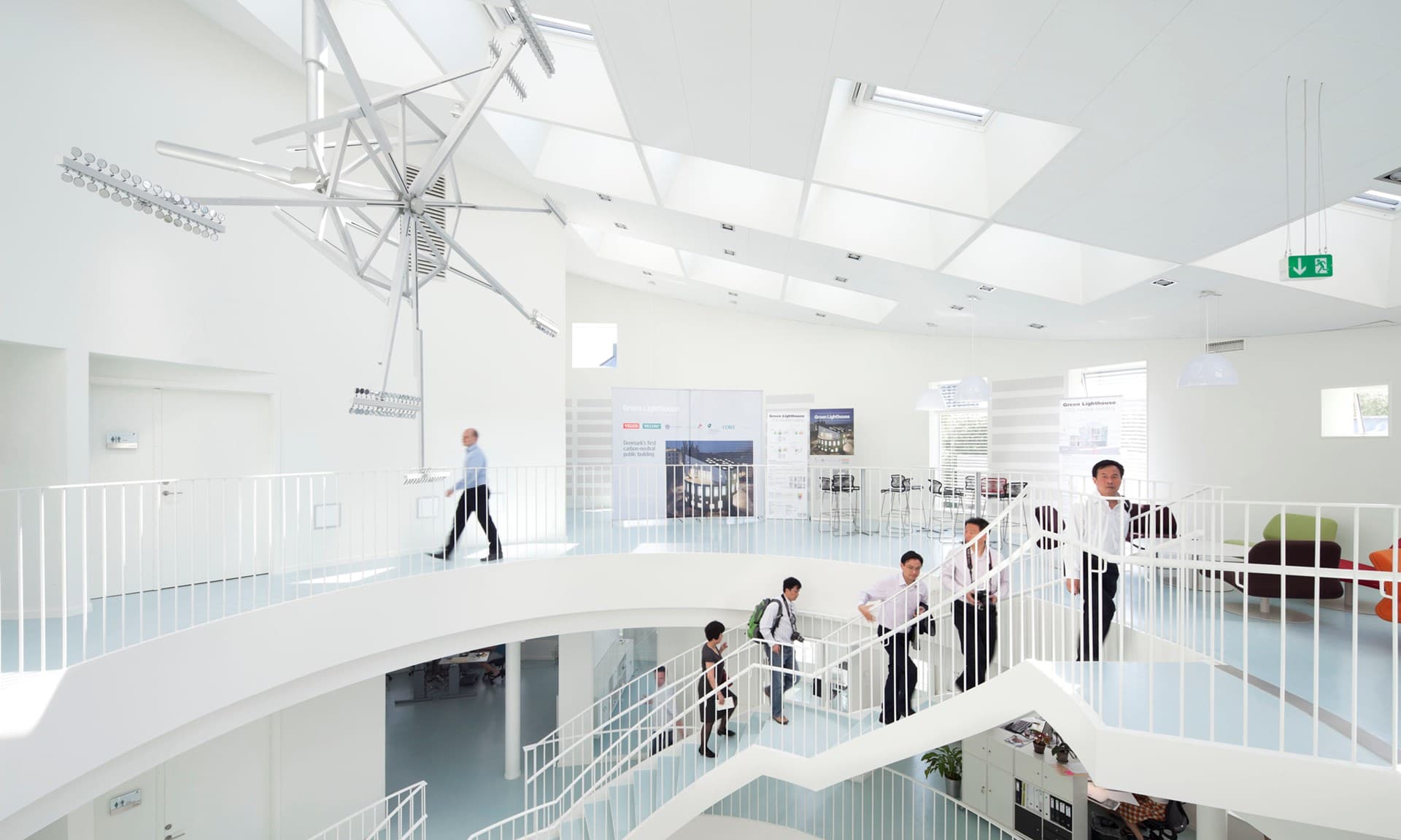 "Med solen som den dominerende energikilde, spejler bygningens runde form og facadens bevægelige lameller solens vandring omkring bygningen". Således forklarede arkitekt Michael Christensen, direktør i Christensen & Co Arkitekter, det overordnede greb i formgivningen af bygningen. Bygningens centrale kerne rummer plads til socialt liv, men er samtidig kanal for lys, der strømmer ind og ventilation for luft, der trækkes ud. Husets øvrige funktioner er samlet omkring det centrale rum, der reflekterer solens gang omkring bygningen via tagvinduerne.