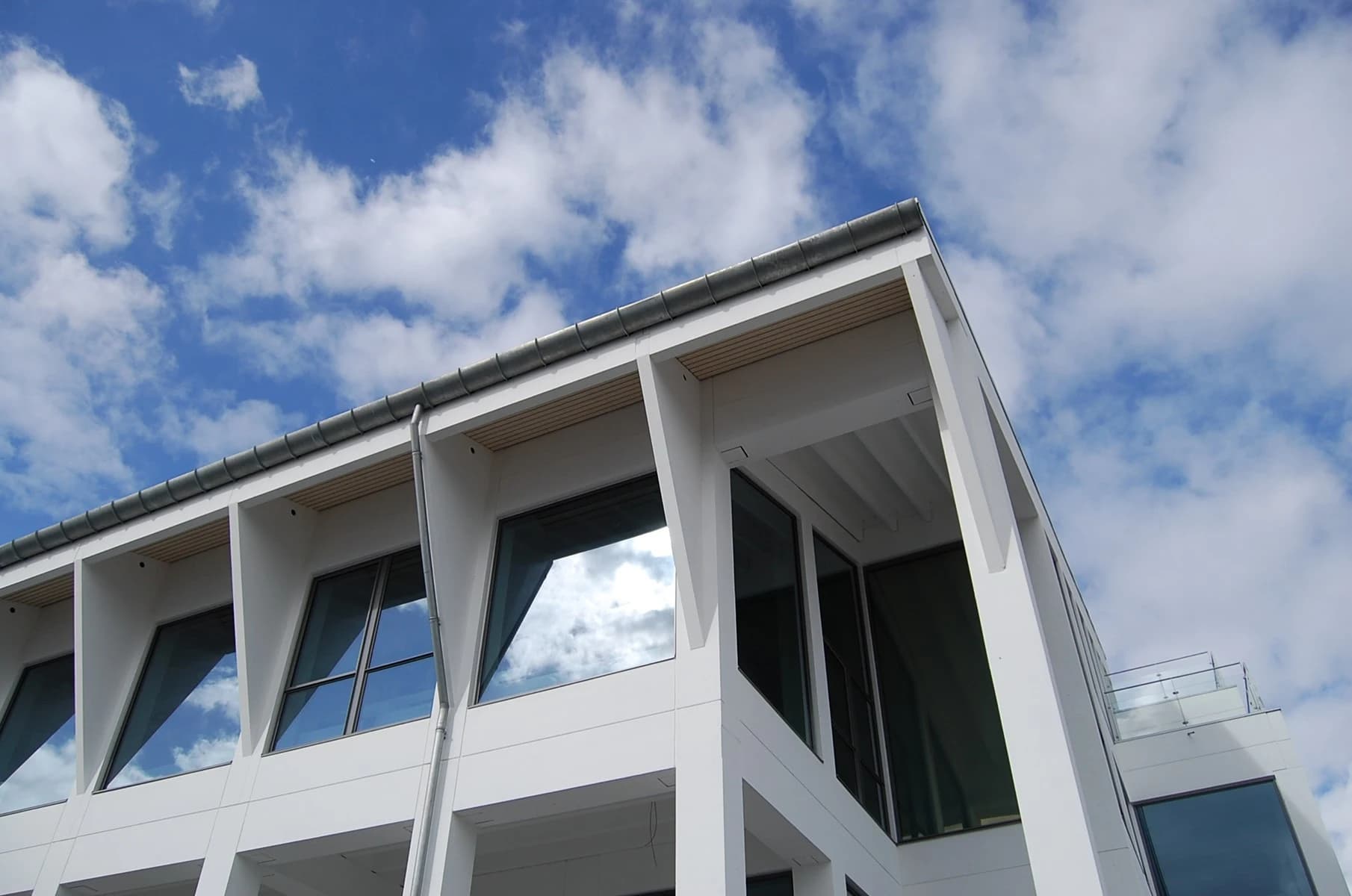 I Kalkbrænderihavnen har Utzon-familien sat deres arkitektoniske fingeraftryk med de karakteristiske stramme linjer og hvide rene facader, som dominerer flere af havnens bygninger, blandt andet Harbour House II.
