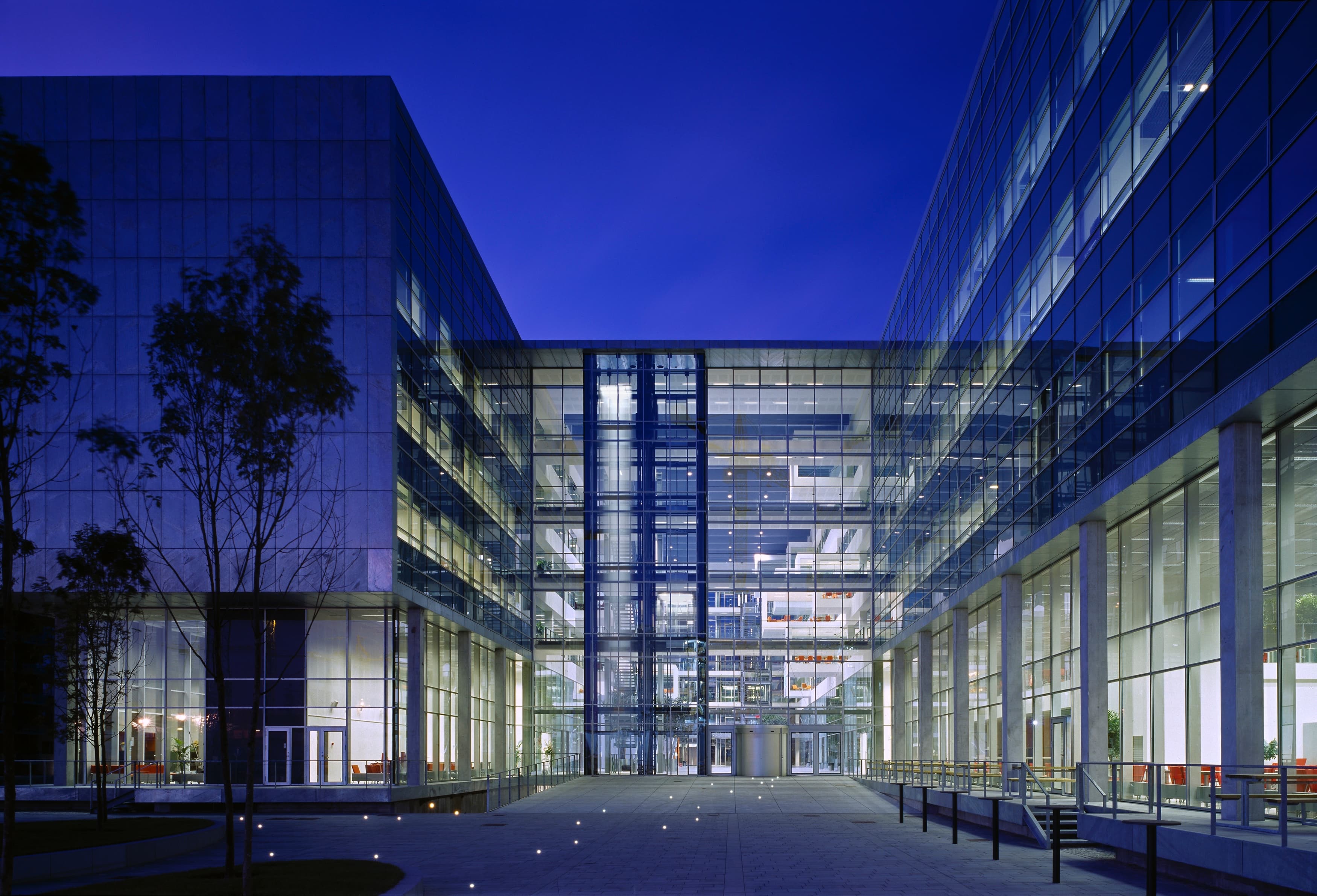 Mellem ITU's to hovedbygninger er der en imponerende indre gård, et atrium.