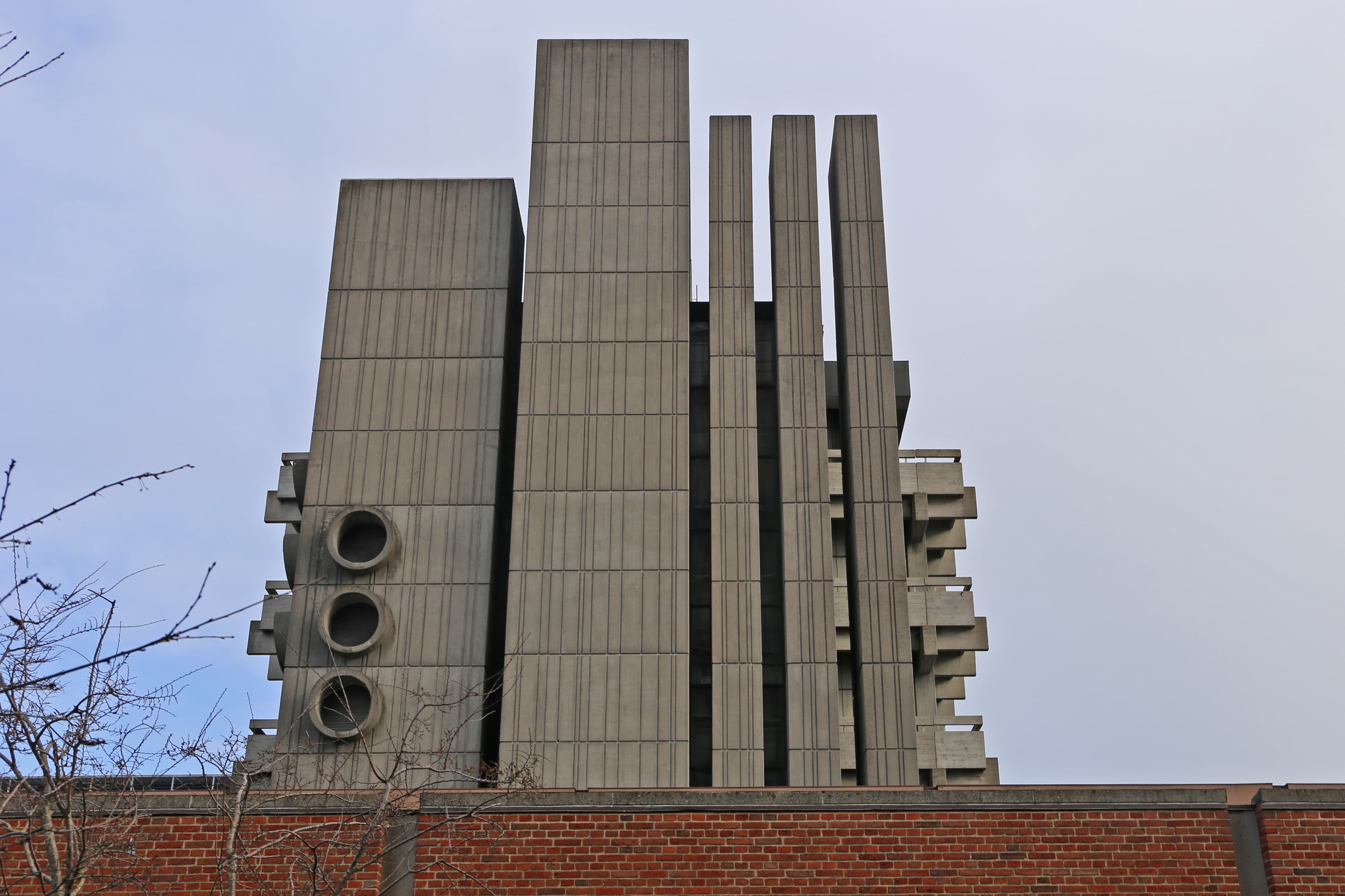 Bag Panum Instituttets brutalistiske ydre er de enorme bygningslegemer klart struktureret til beliggenheden og funktionen.