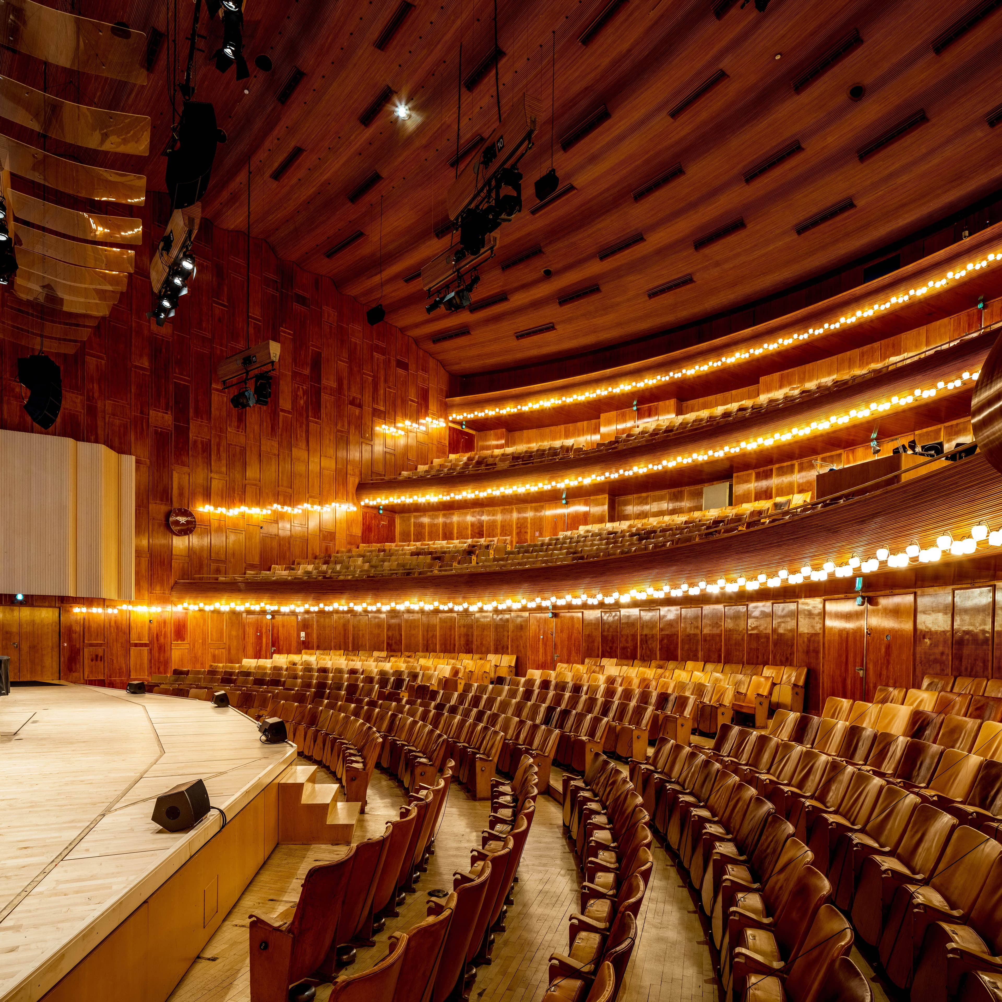 Vilhelm Lauritzen var funktionalist og alle elementer er designet på baggrund af en grundig funktionsanalyse. Formen følger med andre ord den funktion, som den skal indeholde. Bygningen har karakter af en række sammenføjede rektangulære æsker med forskellige og klart afkodelige funktioner. Koncertsalen former sig som en stor trapezformet volumen med kuplet tag og hovedindgangen er placeret i den højeste fløj ud mod Rosenørns Allé.