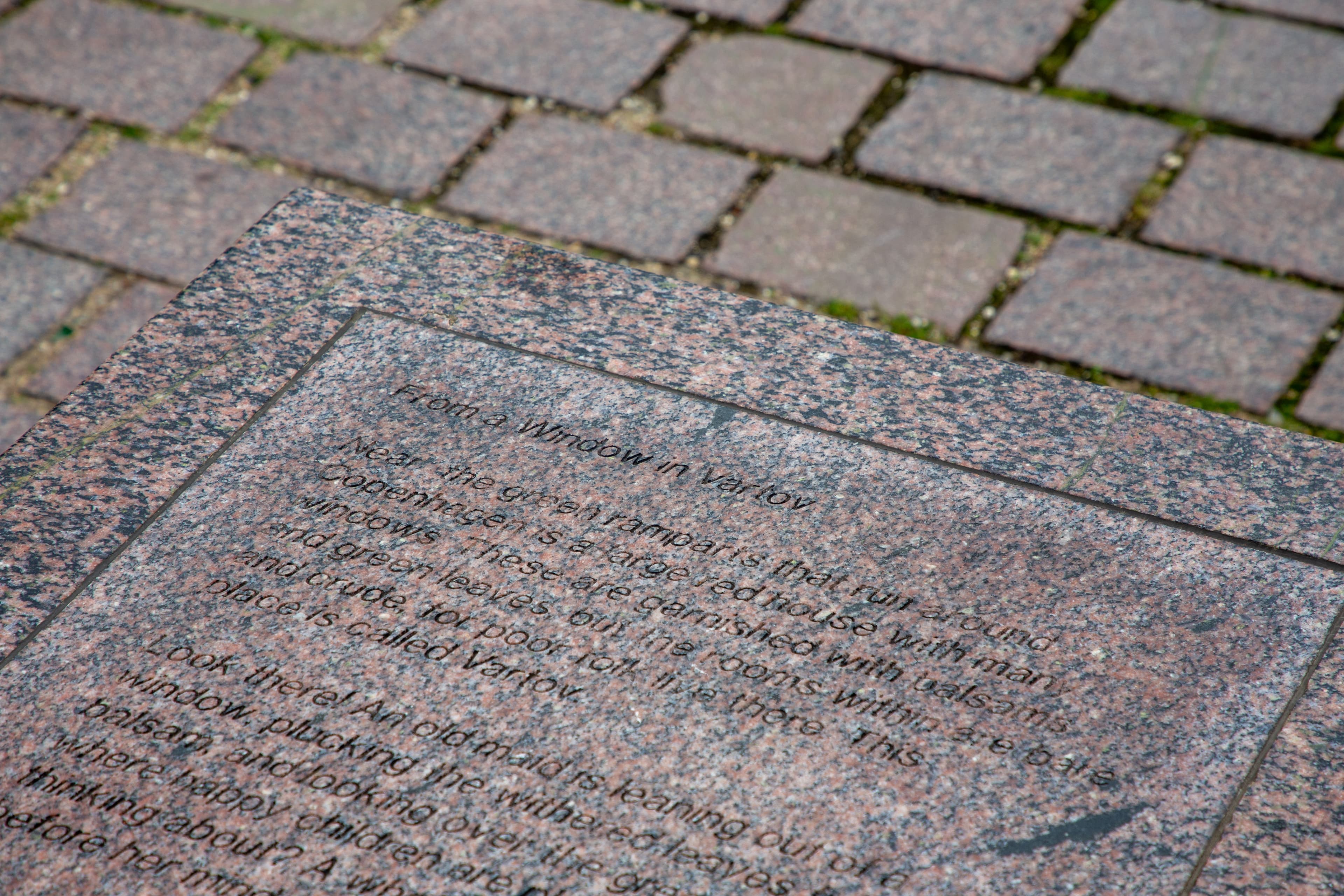 Bygningen Vartov med de røde teglstensmure er pladsens ældste bygning. Udover at give det indledende navn til projektet – Pladsen ved Vartov – gav bygningen og dens mange vinduer også arkitekterne inspiration. Kigger man på belægningen, kan man se, at ternene i granit og brosten er lavet, så de spejler vinduernes mønstre i den gamle bygning. Arkitekterne lod sig også inspirere af H.C. Andersen-eventyret ’Fra et Vindue i Vartov’, hvilket man ser på to af de store granitklodser, hvor teksten fra eventyret er indgraveret.