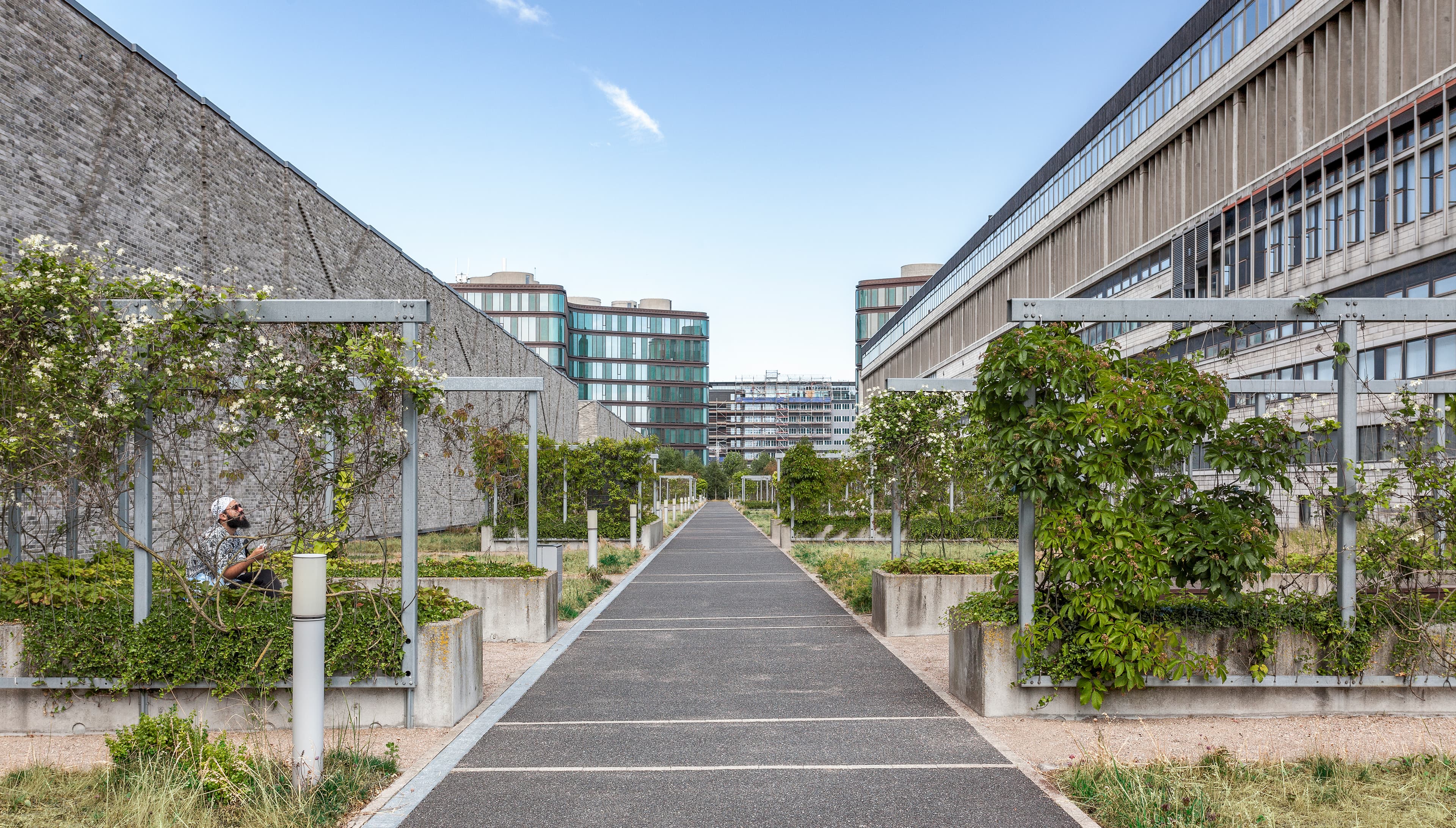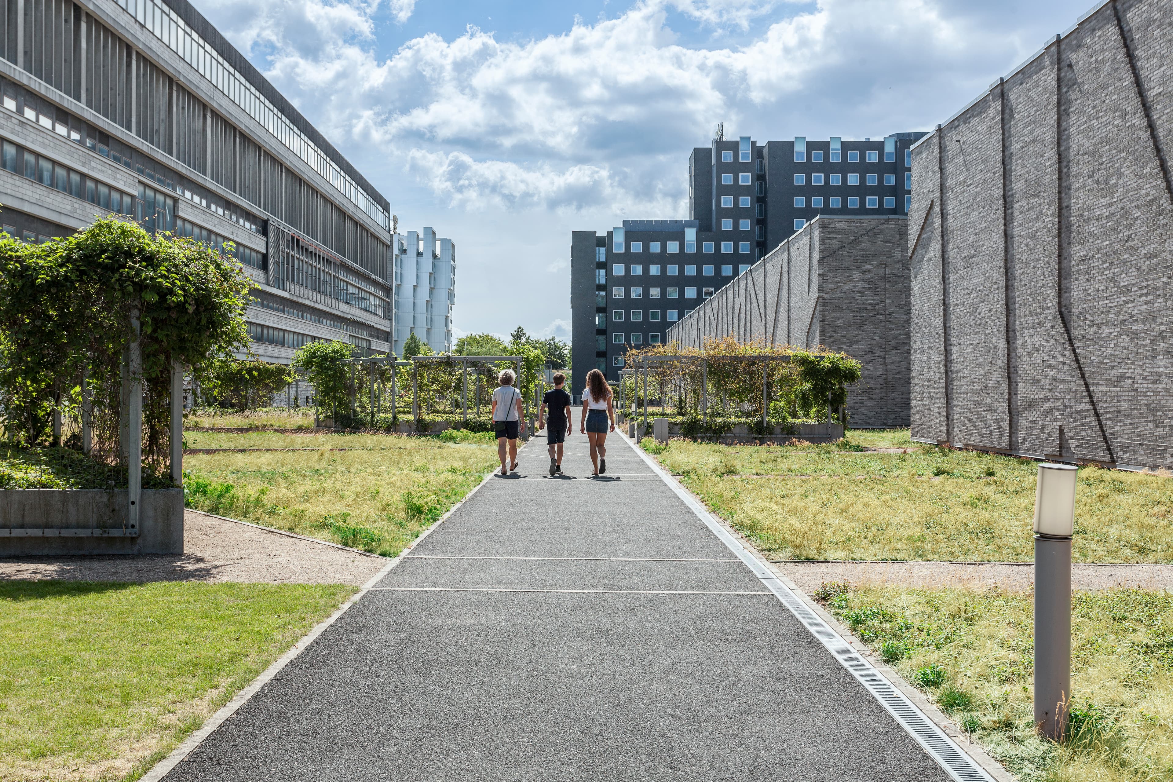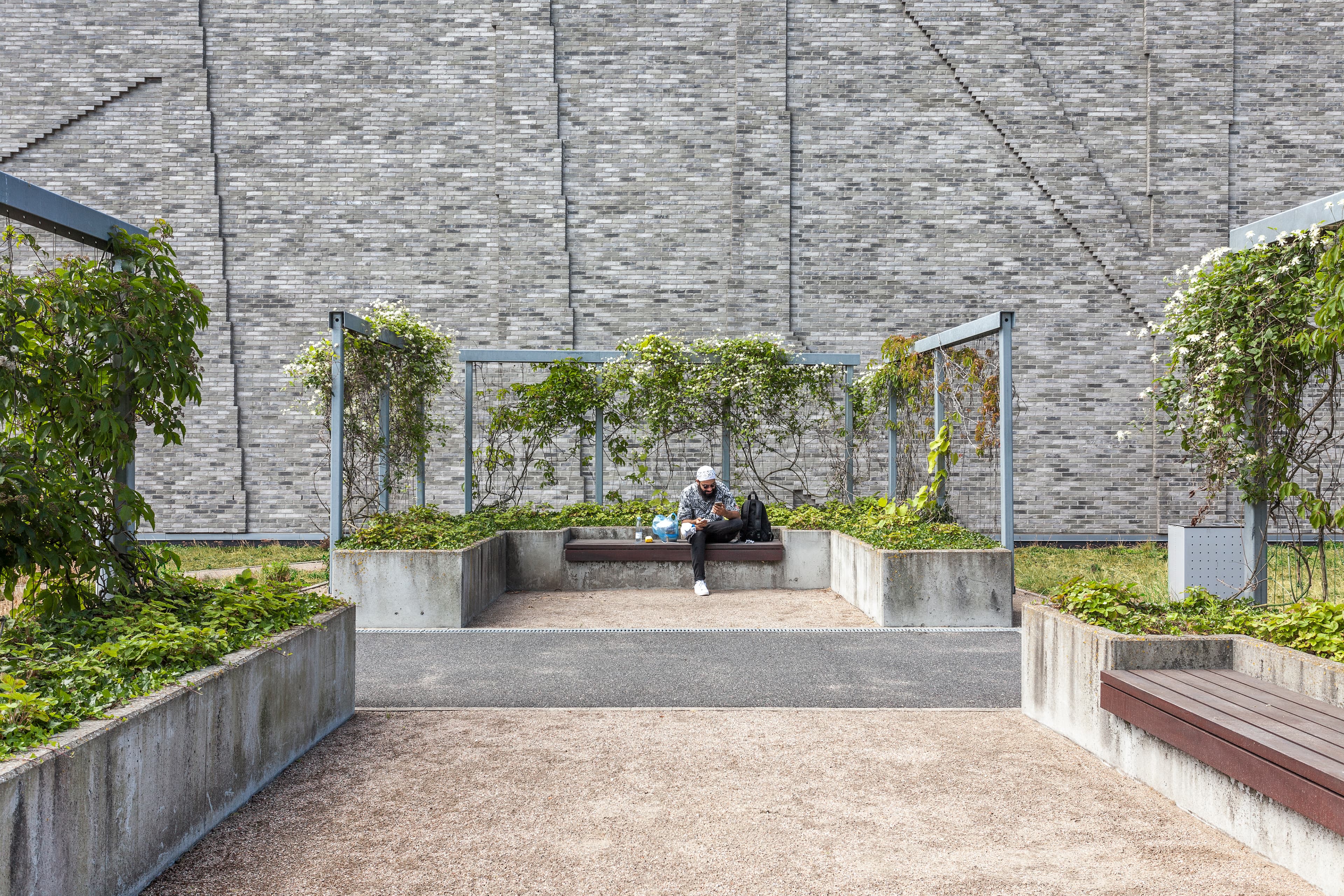 På taget af en af arkivbygningerne, 8 meter over jorden, ligger der et grønt strøg. Her går facadens relieffer igen i form af små stier, som flere steder indrammer mindre opholdsrum med bænke og skrånede bede. På taghaven opsamles regnvand i et reservoir til senere genbrug. Haven er desuden lyd- og varmeisolerende og afgiver en fugtighed, der effektivt regulerer temperaturen i arkivet og sørger for et godt mikroklima.