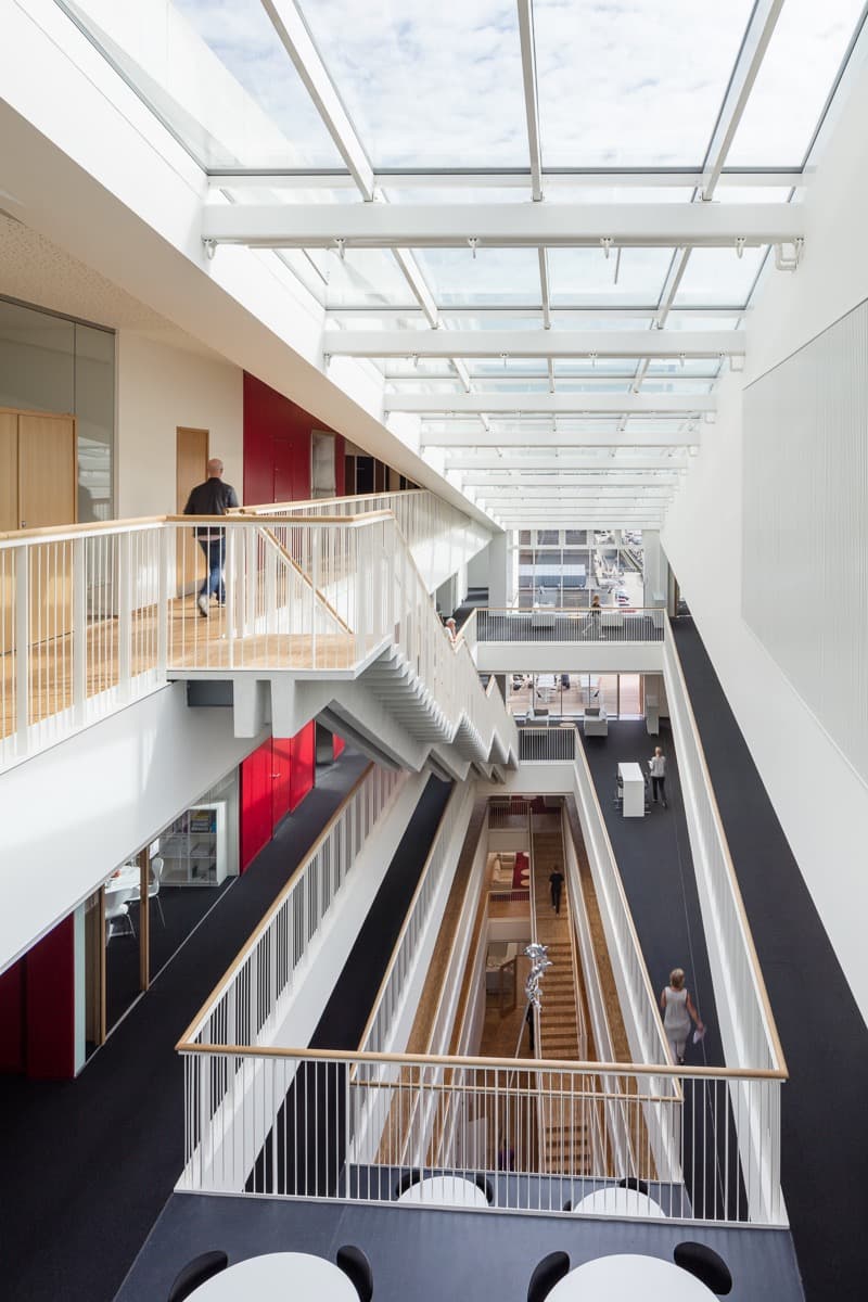 Ambulatorier og andre funktioner, der giver meget trafik er samlet tæt på gangen, mens sengestuerne er trukket længst væk fra det trafikerede hovedstrøg. Personalet kan dermed bevæge sig hurtigt og effektivt fra A til B, uden at krydse senge afsnittene. Det sparer en masse tid og giver en rolig atmosfære omkring sengestuerne.