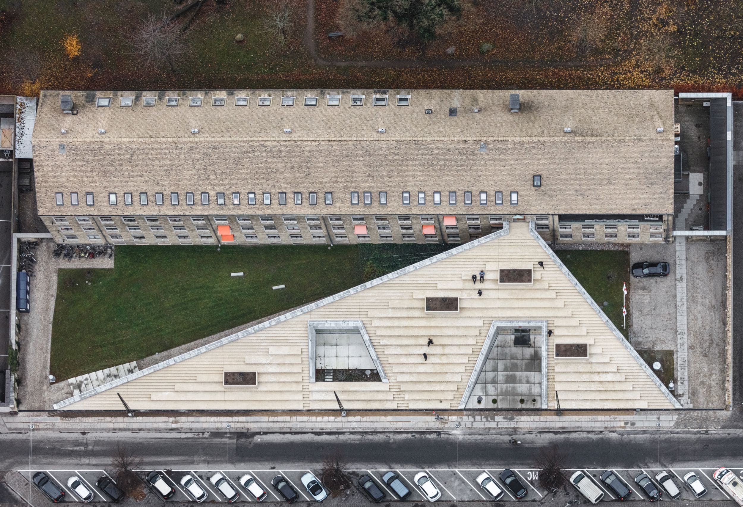 Få sekunders gang fra metroen på Trianglen dukker en enorm trappe af gule mursten op. Man skal være lidt forsigtig, når man bevæger sig rundt på den, men det kan anbefales at sætte farten helt ned og lægge mærke til, hvordan linjer og skygger egentlig påvirker vores måde at orientere os på. Formen er asymmetrisk, og afhængigt af lysets retning kan det næsten se ud, som om trinene forsvinder foran øjnene på en. Der er i øvrigt masser af plads til at slå sig ned og lade blikket vandre. Alle er velkomne.