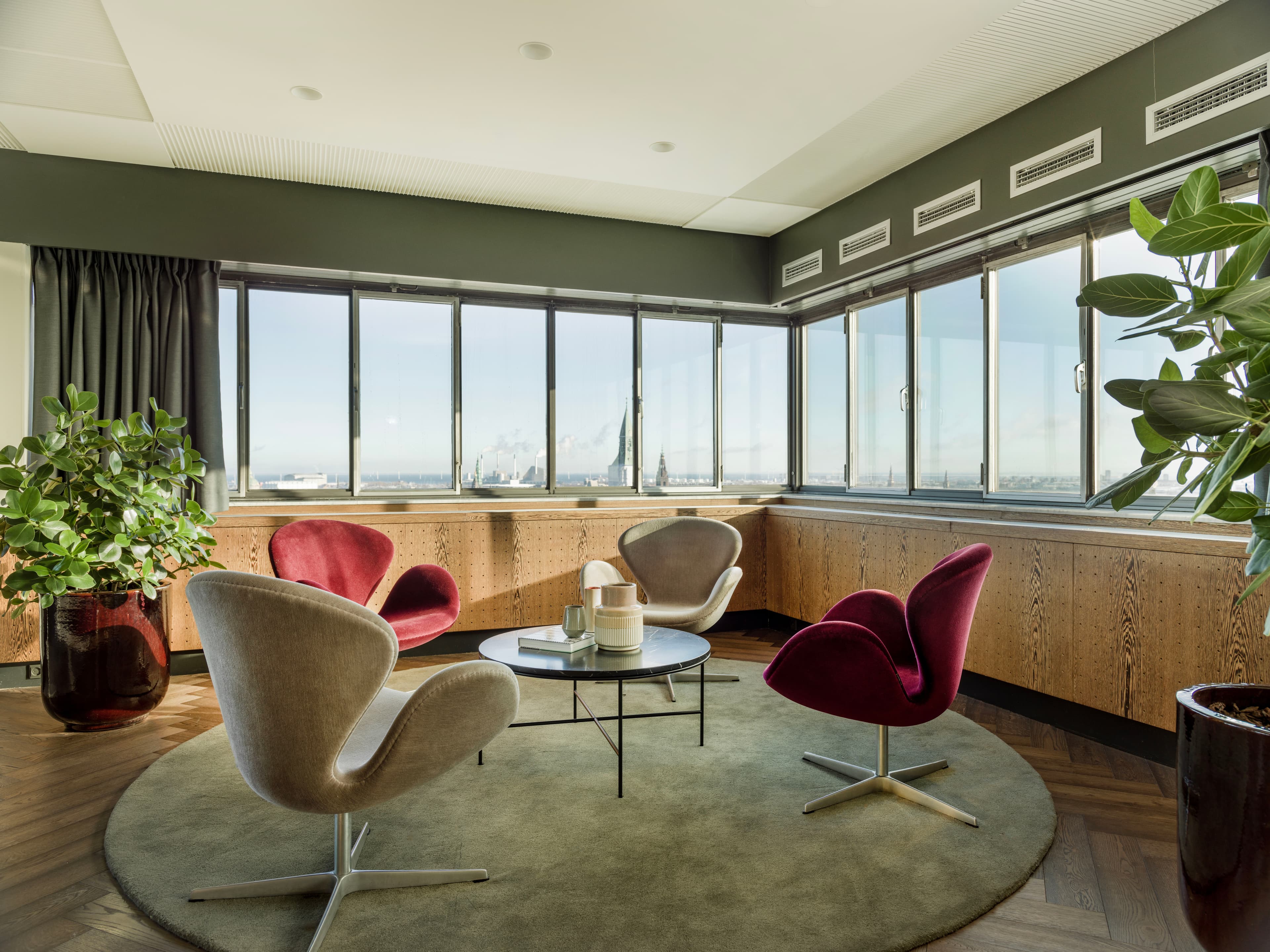 - På toppen af hotellet lå der engang en offentlig restaurant, men i dag finder du en stor panorama suite med 180 graders udsigt over byen.
