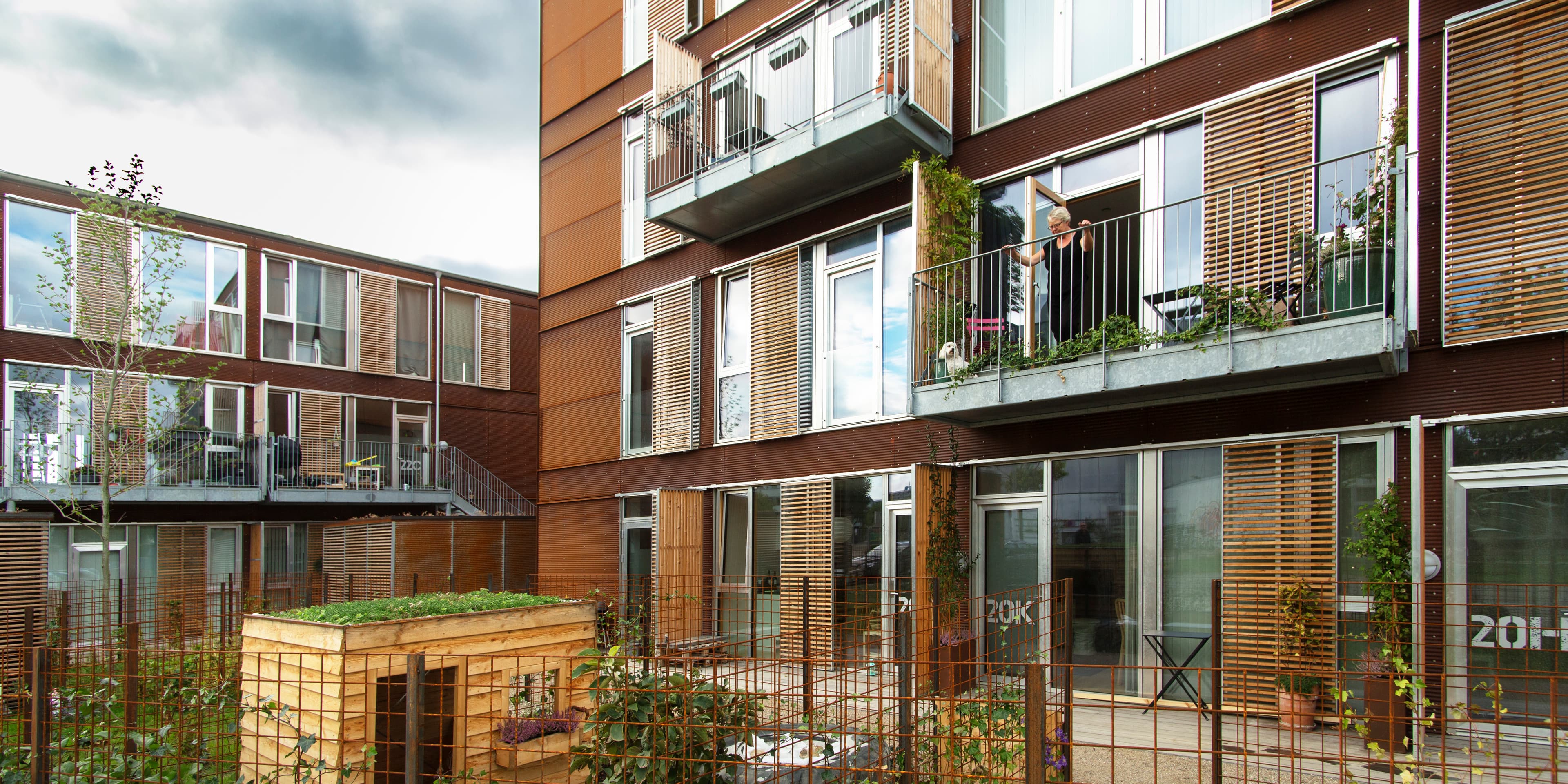 Boligprojektet har fokus på bæredygtighed og biodiversitet og består af bygninger i tre, fire og seks etagers højde. De er bygget i industrielle, præfabrikerede lavenergimoduler, placeret næsten frit på jorden, forskudt fra hinanden.