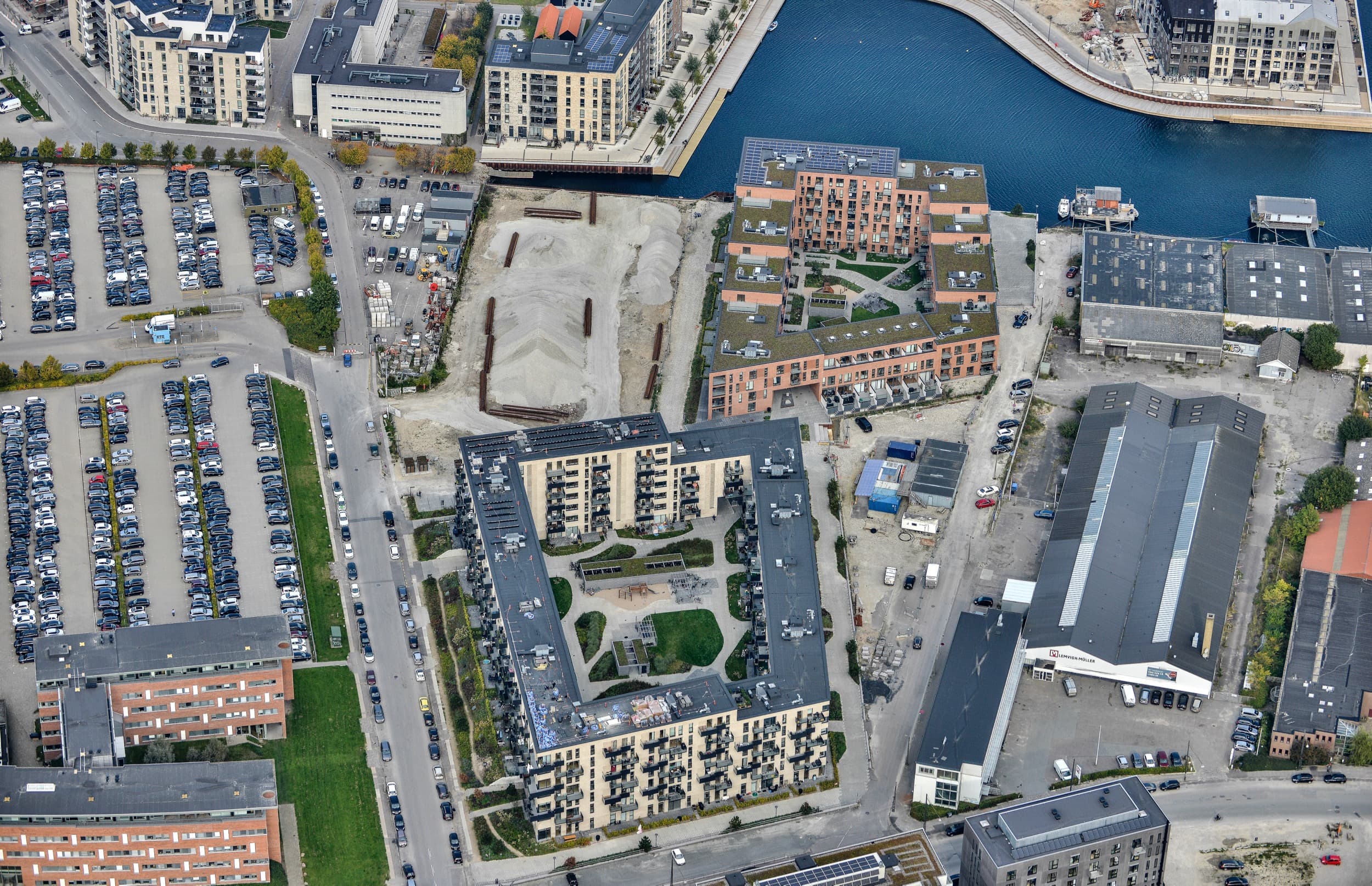 Mod havneløbet giver en bred havnepromenade gode muligheder for byliv ved havnefronten. Vinkelret på Østkajen danner treetagers bygninger et særligt miljø langs havnen med mange mindre opholdsrum og bådepladser imellem husene.