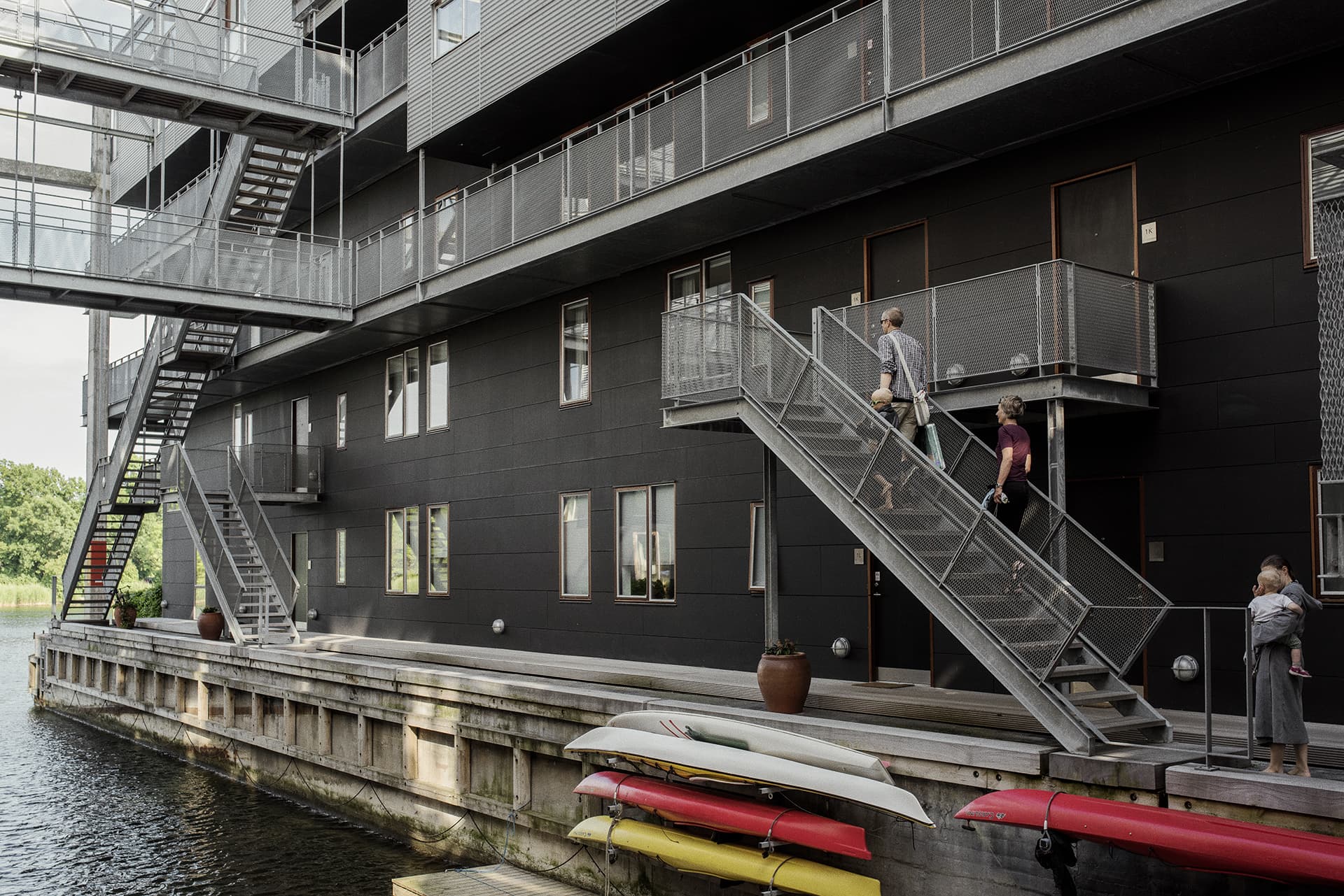 Det oprindelige udrustningsbassin fungerer som en indre kanal i byggeriet, og her kan man tøjre sin båd eller kajak. Samtlige lejligheder har en tagterrasse og/eller altan eller privat have, og byggeriet har privat indendørs parkering. Tilsammen er der 8.700 kvm etageareal, hvortil kommer 6.200 kvm fordelt på henholdsvis teknik- og pulterrum samt parkeringsareal.