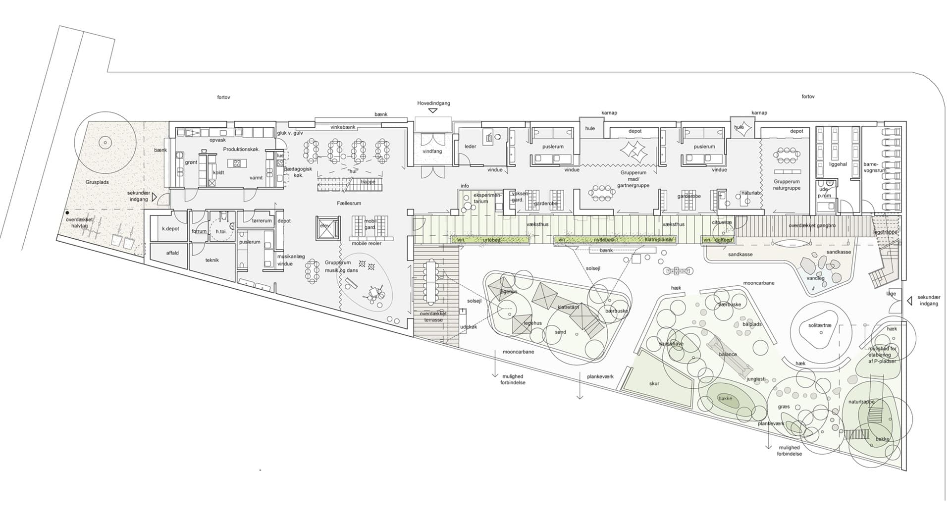 Planen viser bygningens placering, adgangsforhold, vej og sti systemer og forholdet til andre bygninger. Den kan samtidig vise udformningen af de nære omgivelser med beplantning, belægning, parkeringsforhold osv.
