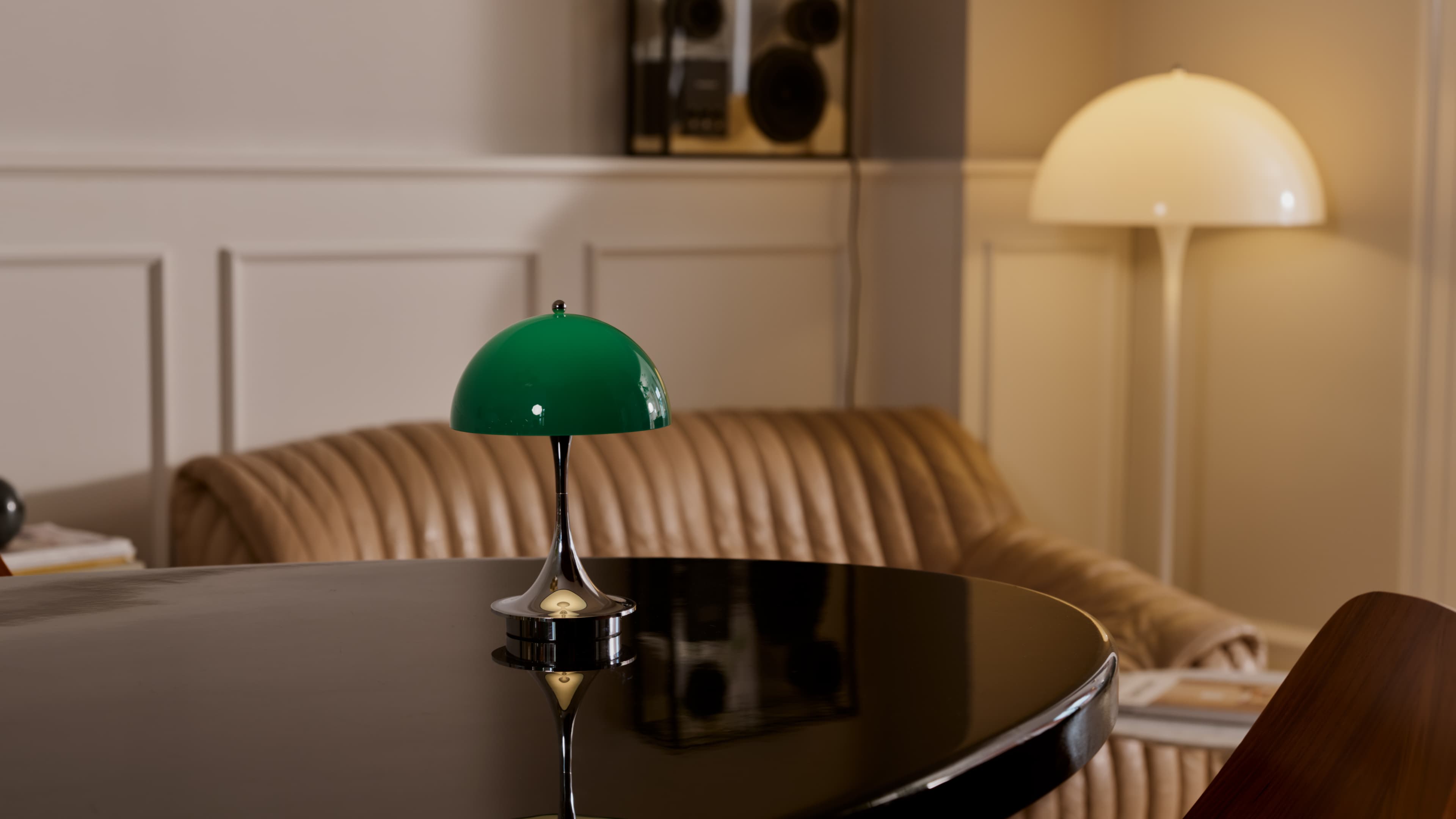 Panthella er et pragteksempel på Pantons menneskecentrerede tilgang til lys. Den organiske form skjuler lyskilden og reflekterer lyset blødt i både skærm og fod. Det resulterer i en varm og jævn belysning, hvor funktion og form smelter sammen i ét samlet udtryk. Den kom ud i 1971 som både bord -og gulvlampe, og blev i 2016 videreudviklet i en mindre version.