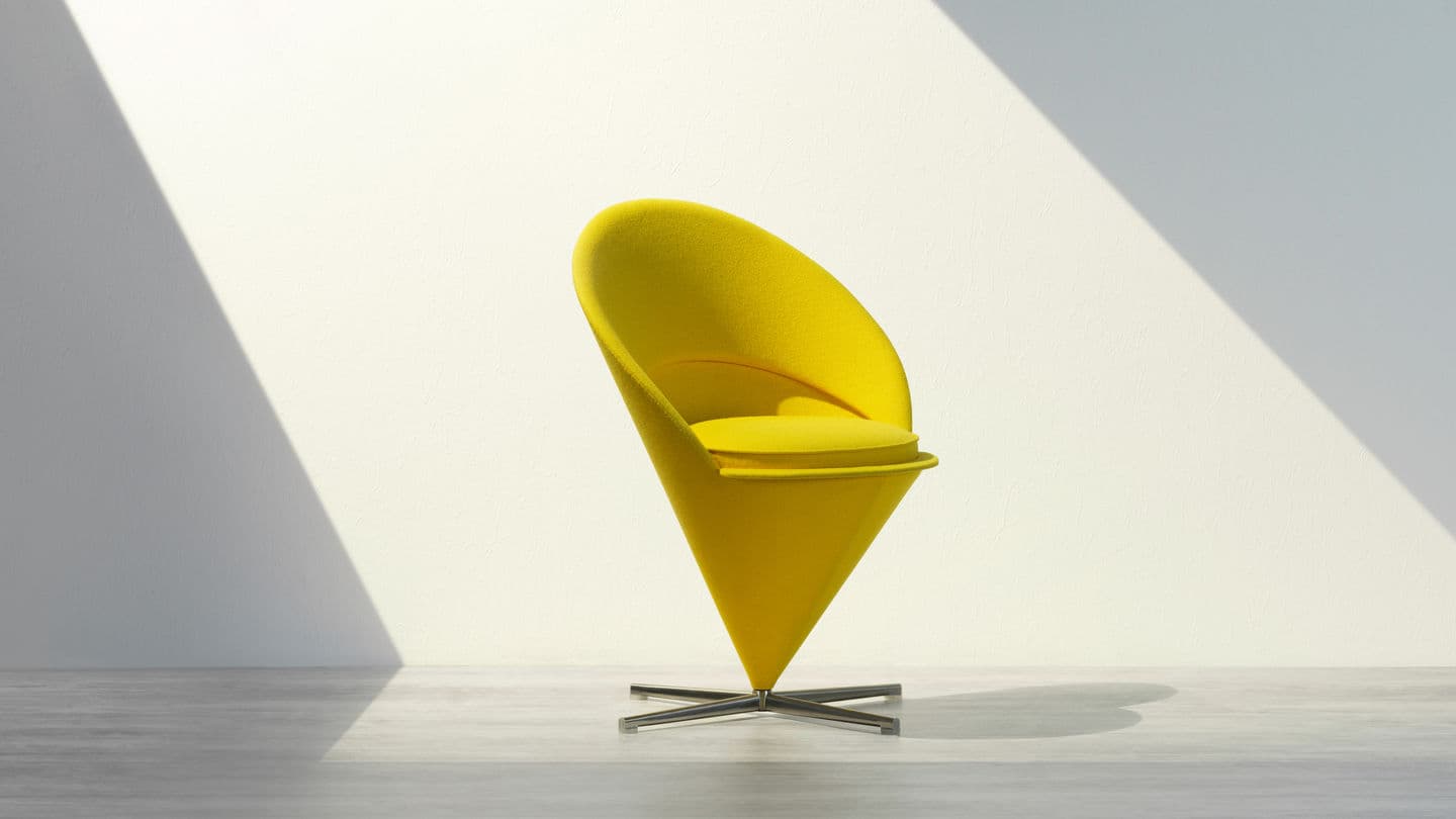 Med sin ikoniske s-silhuet i kunststof gav Verner Panton et tidligt glimt af fremtiden. Idéen opstod i slutningen af 1950’erne, men først i 1967 lykkedes det at sætte stolen i produktion efter flere års eksperimenter med materialer. Resultatet blev verdens første fritsvævende stol i et enkelt stykke kunststof – et symbol på popdesign og nye produktionsmuligheder. Senere kom den i mere prisvenlige versioner, og i dag produceres den populære stol stadig af Vitra.