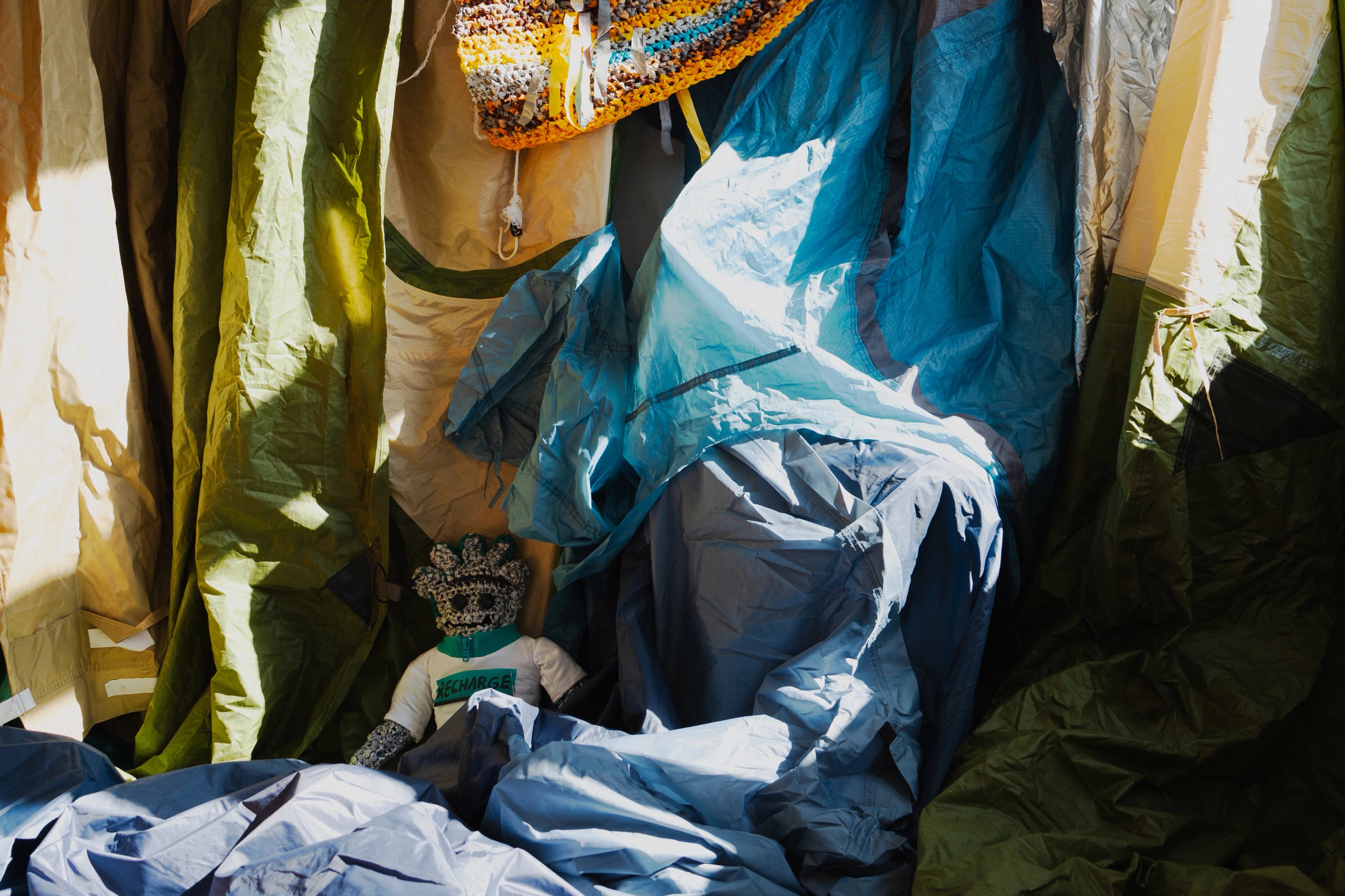 Deres primære arbejdsmateriale er telte fra Roskilde Festival.