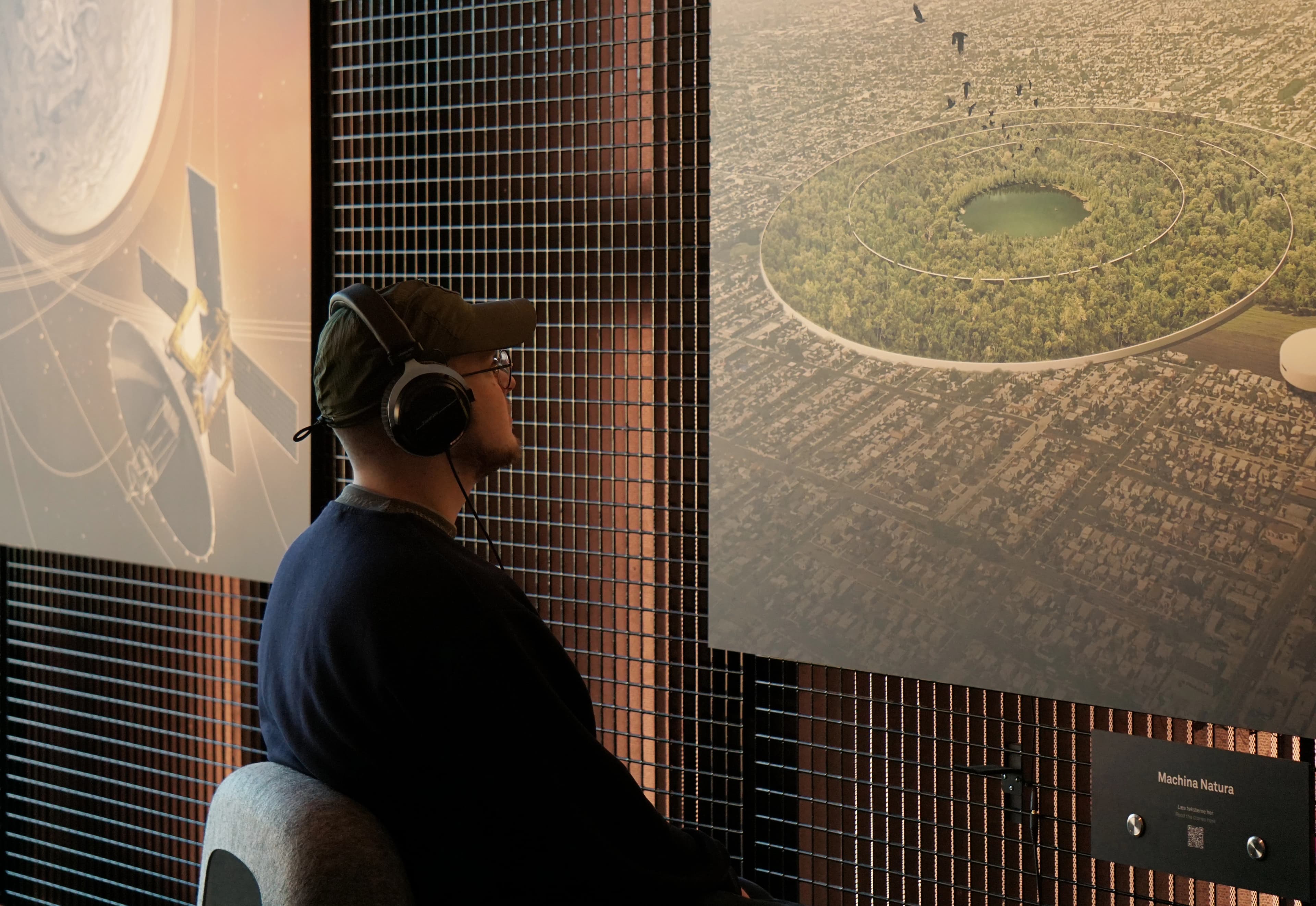 Udstillingen består af fire storkollager og fire lydværker med indtalte fortællinger og musik af lydkunstner Villads Klint. Indledningsvis til udstillingen spørger en af arkitekterne, hvordan vi kan løse verdens problemer uden vold. Svaret får han af en hologramversion af den amerikanske arkitekt og futurist Richard Buckminster Fuller (1895-1983), som forklarer, at vi må sammenkoble hele verden gennem et globalt energinet.