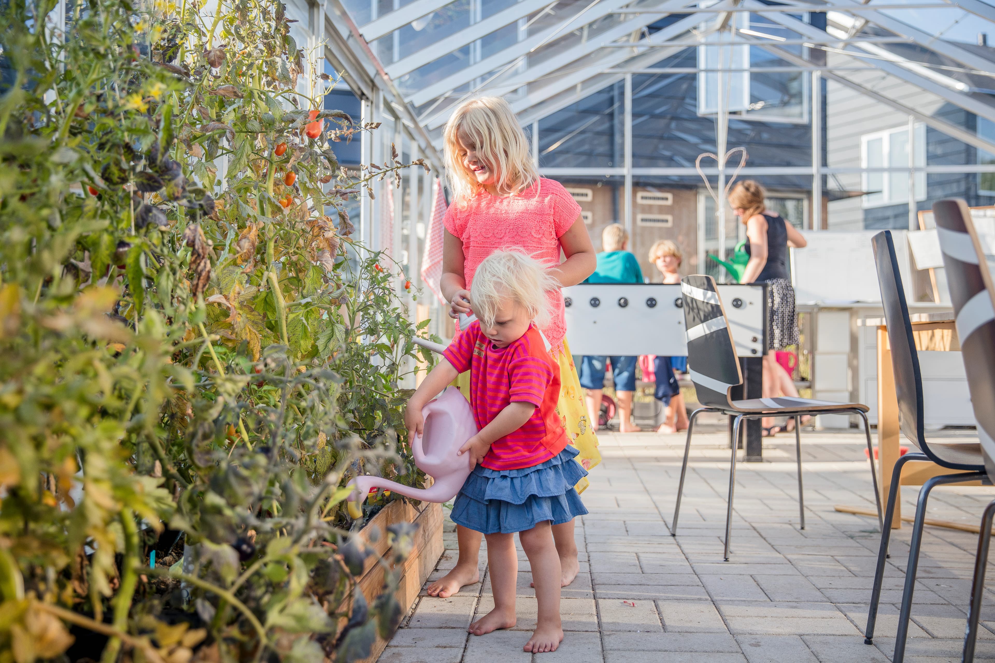 Rundt omkring i udstillingen findes et børnespor: kravl gennem børnetunnelen, se en film om syltning på toppen af miniboligen, og lær om, hvordan planter er geniale til at farve stof. I fælleshuset opfordres både børn og voksne til at lave flere fælles aktiviteter sammen. Her kan de mindste fx klæde sig ud, lytte til en god historie og spille backgammon eller bordfodbold.