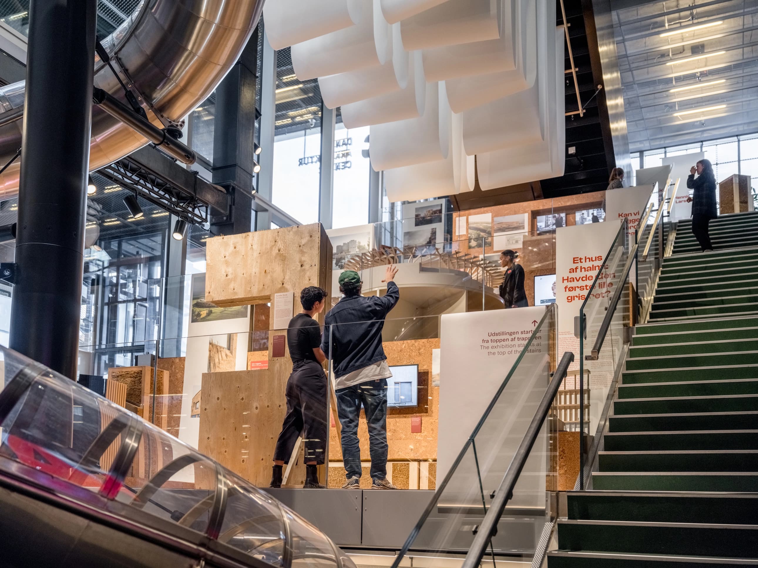 Gæster kan træde ind i Dansk Arkitektur Centers Trappegalleri og udforske projekter og processer, men også nogle af de vigtigste læringer, som tegnestuen har gjort sig.