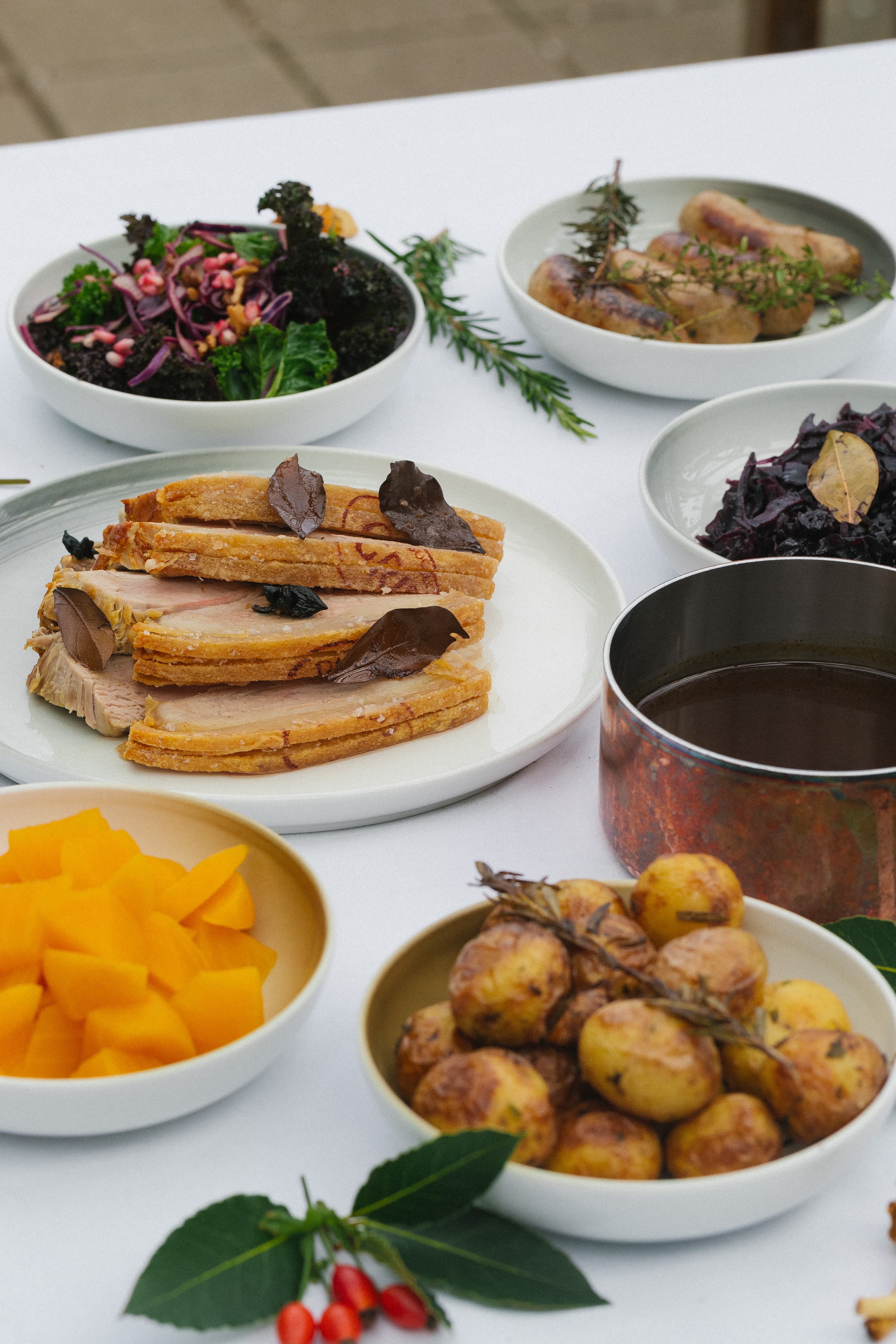 Vores menuer* følger årstidernes skiften. Alle serveres med vores hjemmebagte lyse kernebrød og pisket smør. Inklusive vin, øl eller vand ad libitum til kl. 21.45 samt te/kaffe.