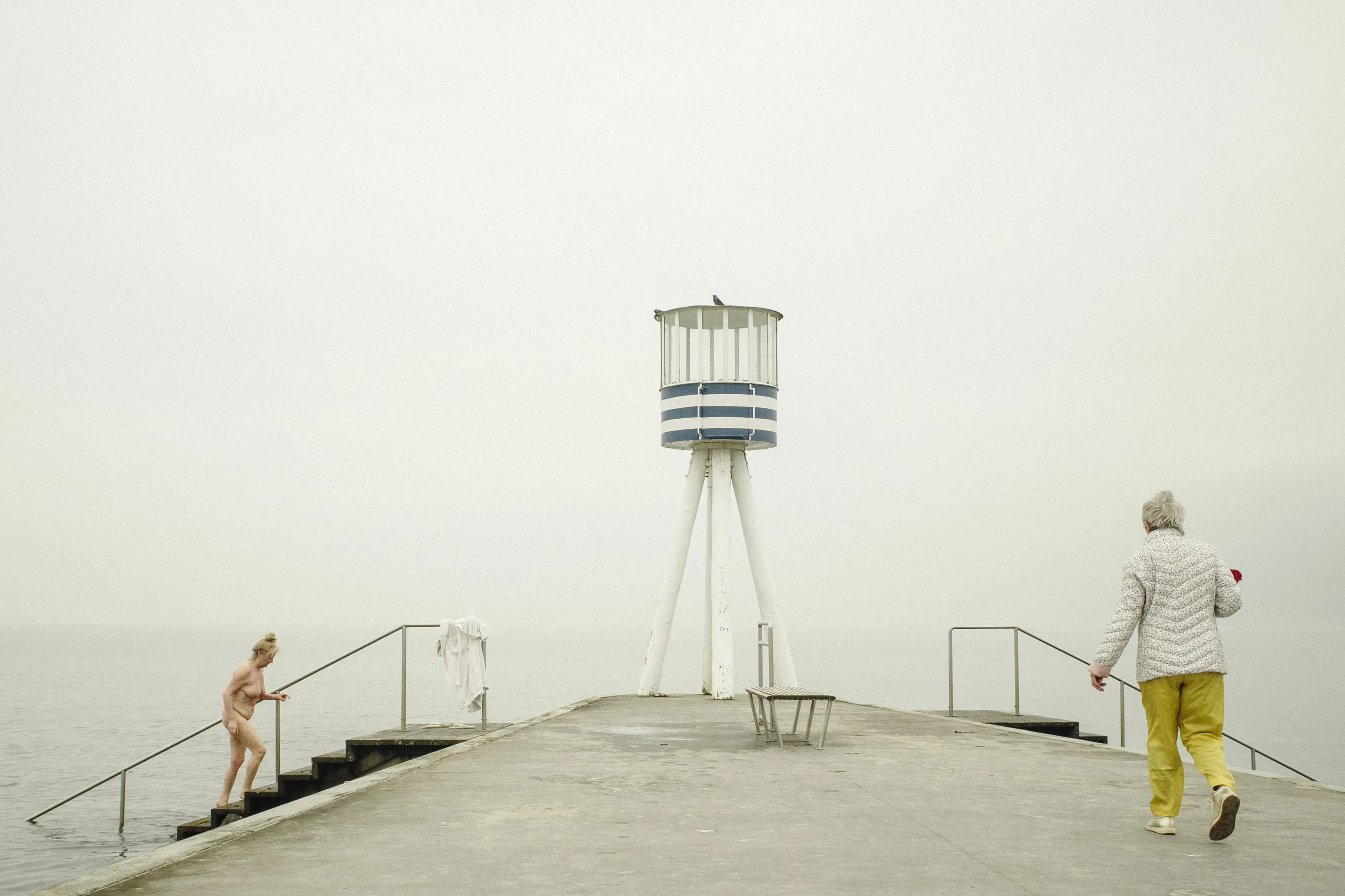 Juryen mente: “Et æstetisk stærkt og velkomponeret foto, hvor vand og himmel flyder sammen og kun brydes af de gule bukser. Menneskene på fotoet er begge ældre kvinder – og måske de i sig selv også er eksponenter for en ny type skønhed, hvor vi ikke kun hylder ungdommens skønhed men alle aldres skønhed. Fotoet handler også om at finde balance – mellem mennesket, byen og naturen, mellem arbejde og fritid. Vinterbadning inviterer til at man kommer ud og mærker kroppen og naturen – ofte i et fællesskab med andre. Er det ikke udtryk for en overlevelsesevne vi har brug for i fremtiden?”