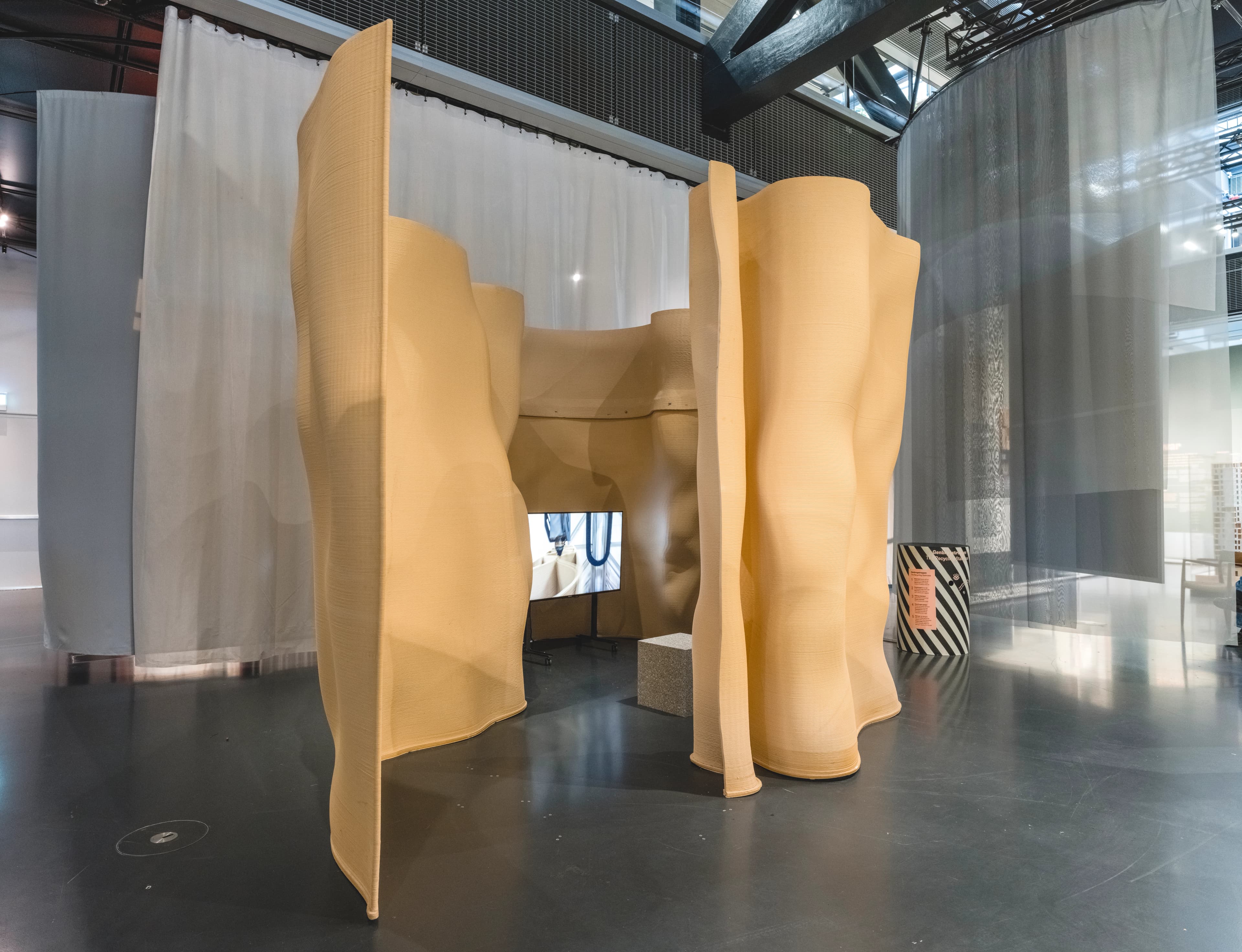 Udstillingen fokuserede bl.a. på beton fra nedrevne bygninger, der genopstod i nye konstruktioner, og brugt træ, der fik nyt liv, samt installationer der viste skønheden i det uperfekte.
