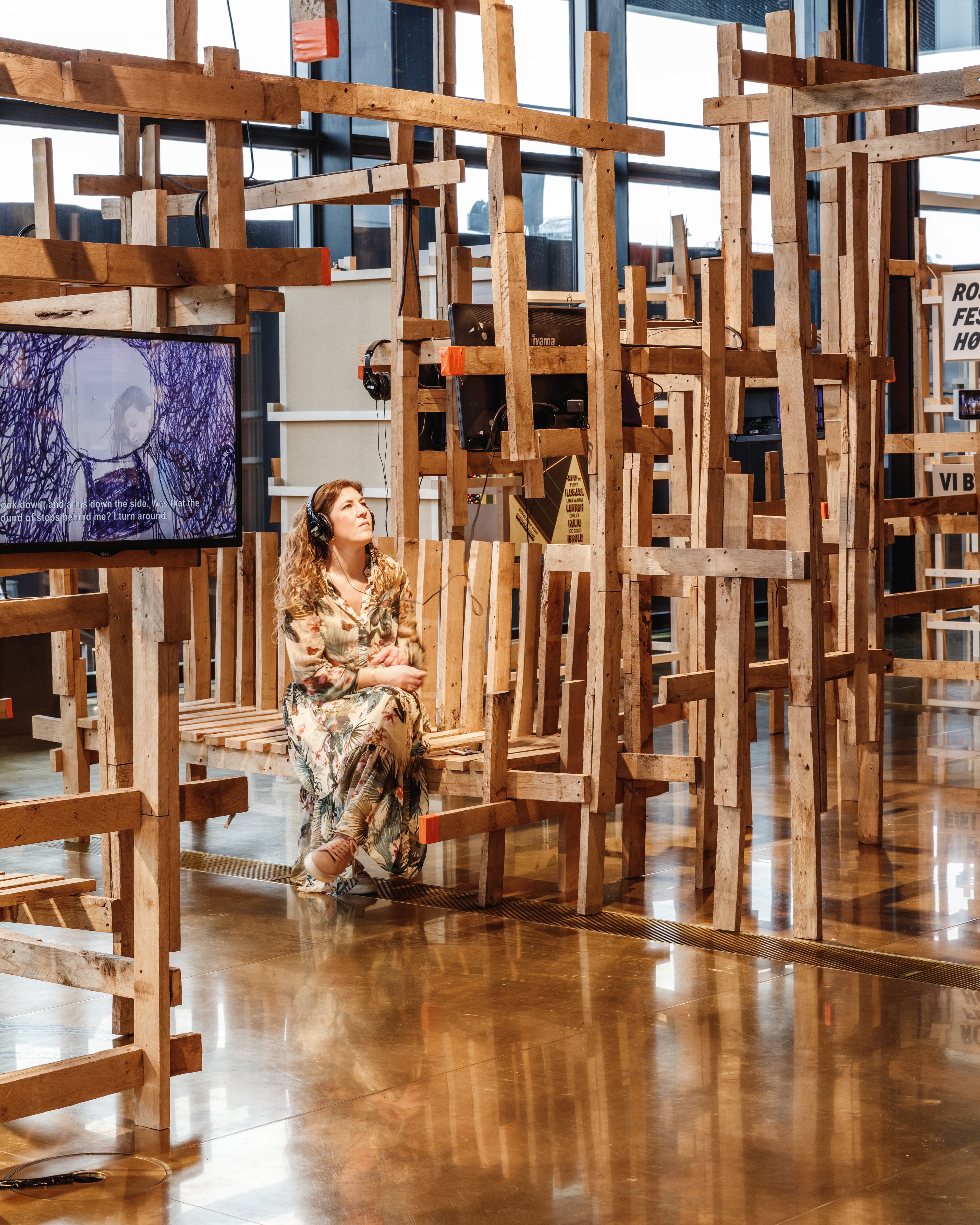 I udstillingen kunne du træde ind i en gigantisk labyrintisk træinstallation, designet og bygget af elever fra Roskilde Festival Højskole. Her kunne du fare vild, slå dig ned og gå på opdagelse i de unges visionære projekter for en bæredygtig fremtid.