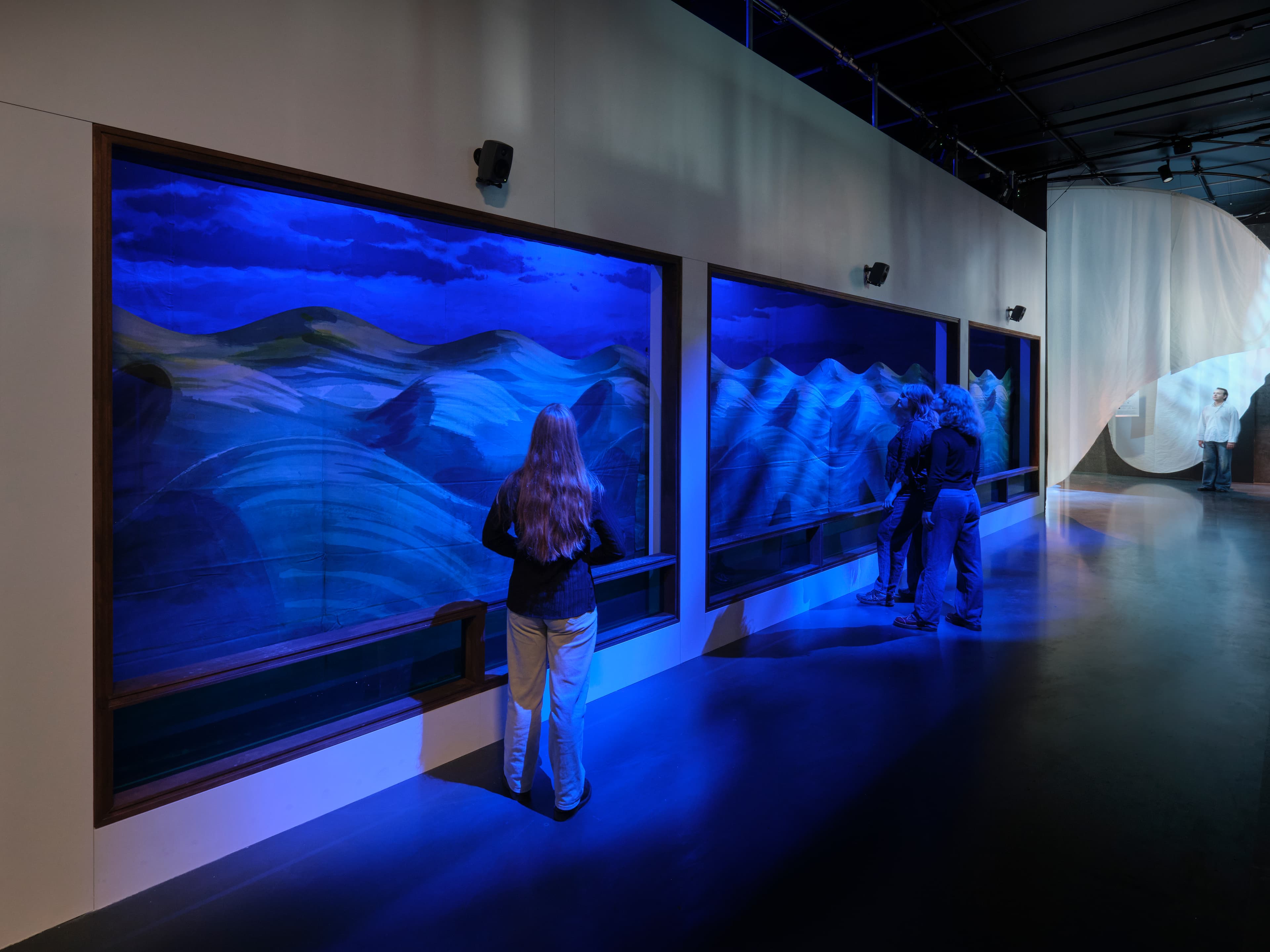 Foto: Anders Sune Berg I udstillingen kan du opleve elementer fra den danske udstilling Coastal Imaginaries på Arkitekturbiennalen 2023. Installationen Mermaid Bay af Christian Friedländer viser et dramatisk diorama af et fremtidigt kystlandskab, delvist opslugt af havet. Gennem lys og lyd skildres kystlandskabets skrøbelighed og klimaforandringernes realiteter for at give os en dybere forståelse af naturbaseret design i vådområder.