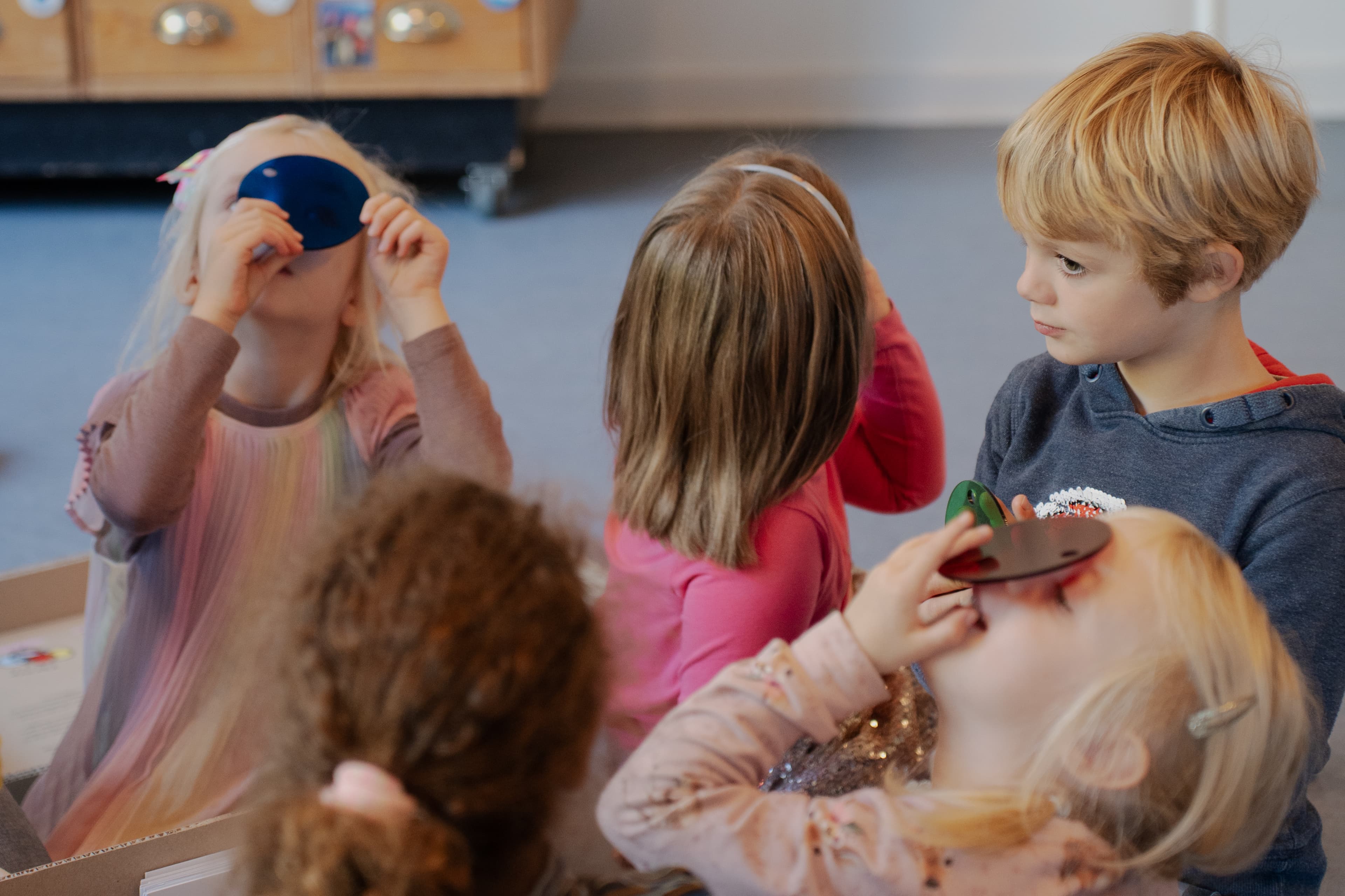 Filmene giver idéer til, hvordan I sammen med børnene kan udforske temaer som rum, størrelse, materialer, farver og former i hverdagen og i jeres læringsmiljøer.